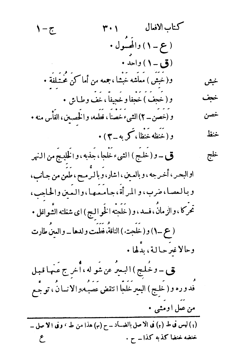 ع-1 و"خَلَجت" الناقةُ فَطَمَت ولدها والعينُ طارت وحالاً غيرَ حالة بدَّلها.