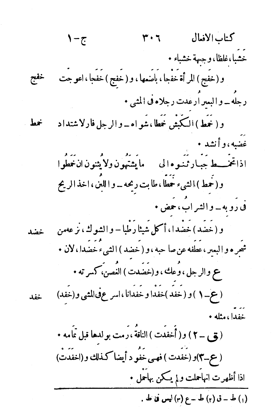 ع-3 و"خَفَدت" فهي خَفُود أيضاً كذلك و"أخفَدَتْ" إذا أظهرت أنها حَملت ولم يكن بها حَمْل.
