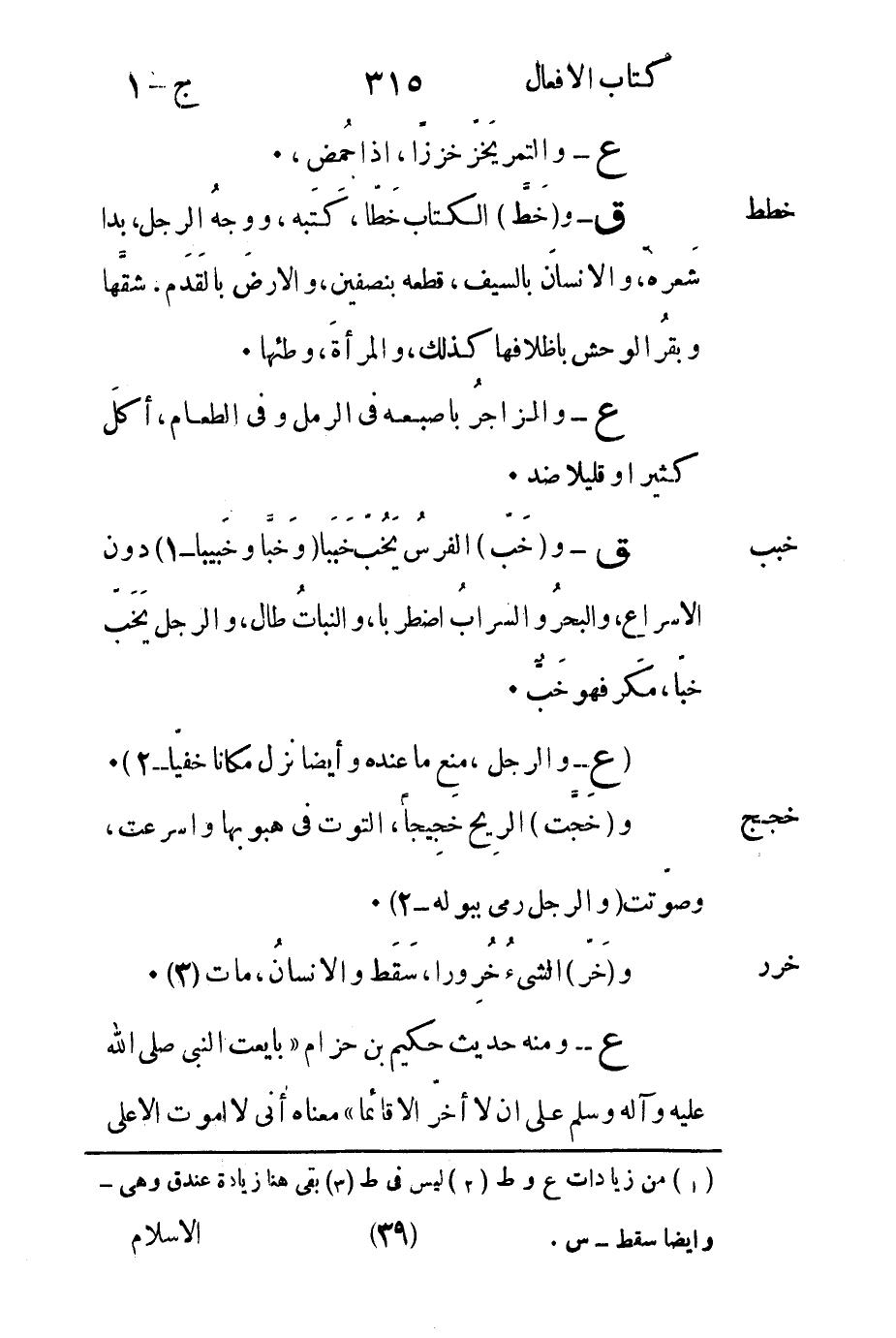 خبب ق- و"خَبّ" الفرسُ يَخُبّ خَبَباً "وخَبّاً وخَبيباً-1" دون الإسراع والبحرُ والسرابُ اضطربا والنباتُ طال والرجلُ يَخَبّ خبّاً مكَر فهو خَبٌّ.