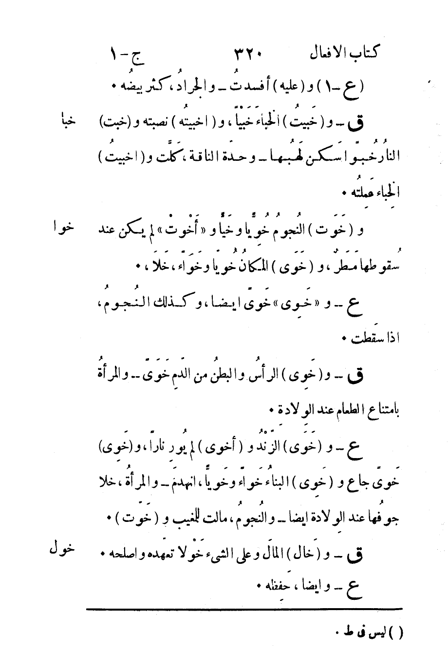 ع- و"خَوِى" خَوىً أيضاً وكذلك النُجومُ إذا سقَطت.