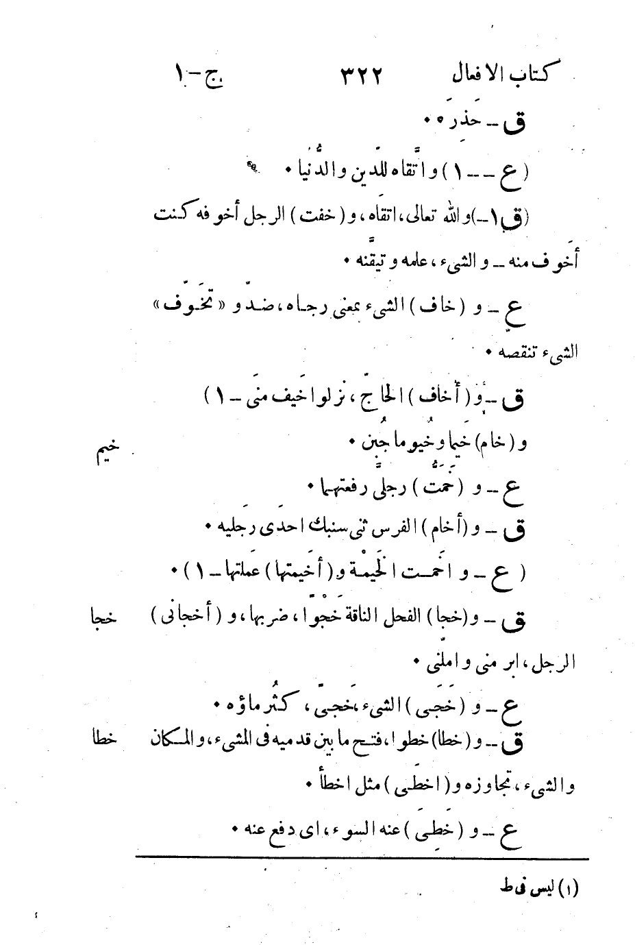 ق- والله تعالى اتقاَه و"خفت" الرجل أخوفه كنت أَخوف منه والشيء علمه وتيقَّنه.