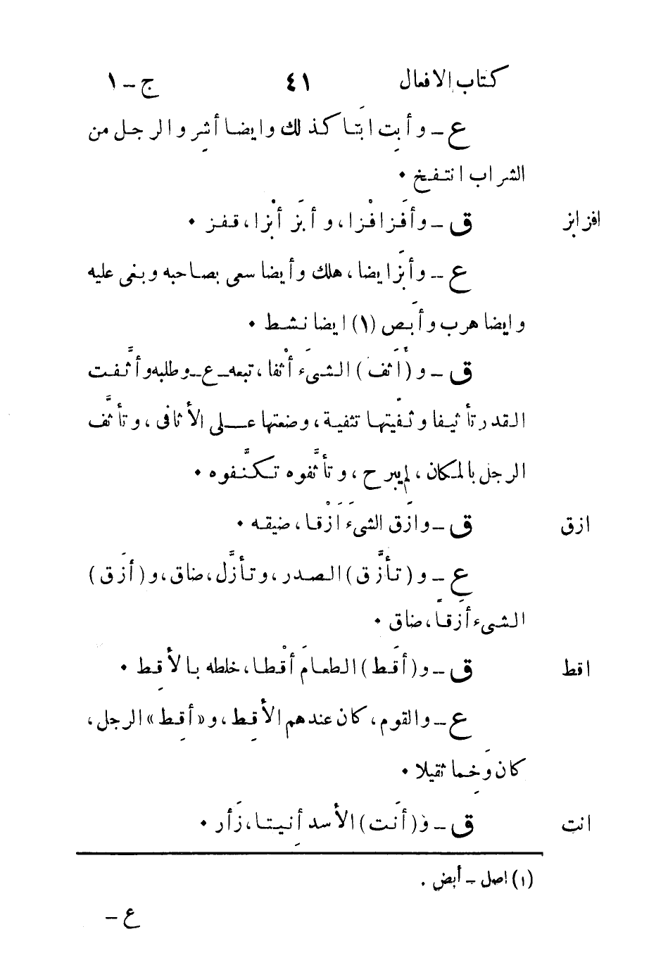 كتاب كتاب الأفعال (اسم الجزء: 1)