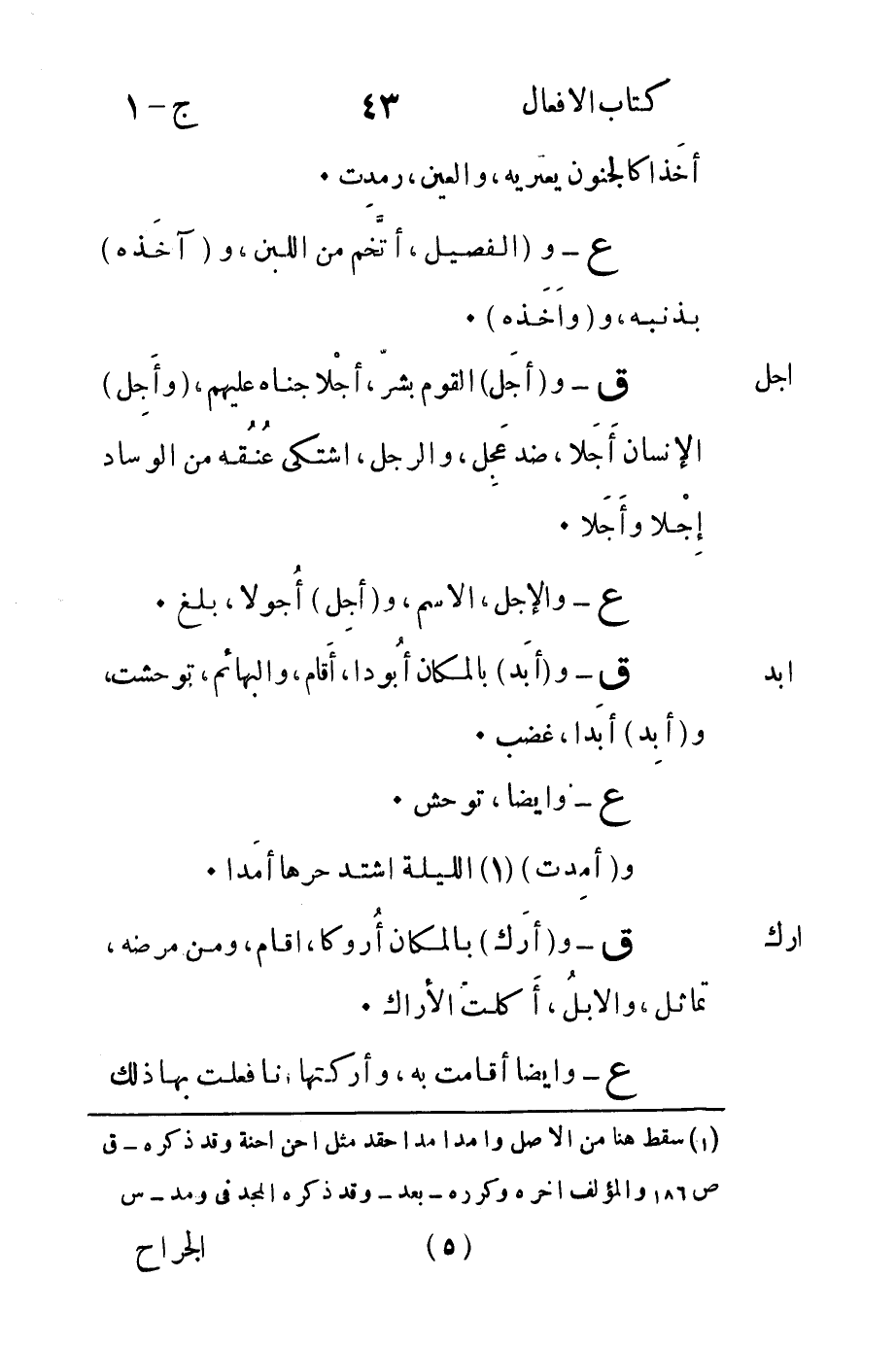 كتاب كتاب الأفعال (اسم الجزء: 1)