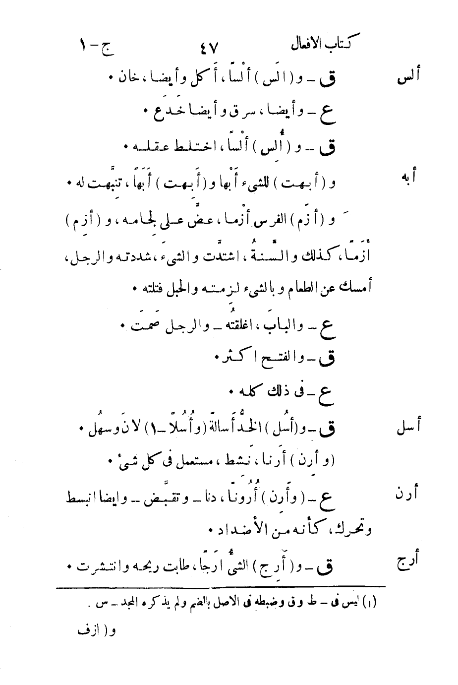 كتاب كتاب الأفعال (اسم الجزء: 1)