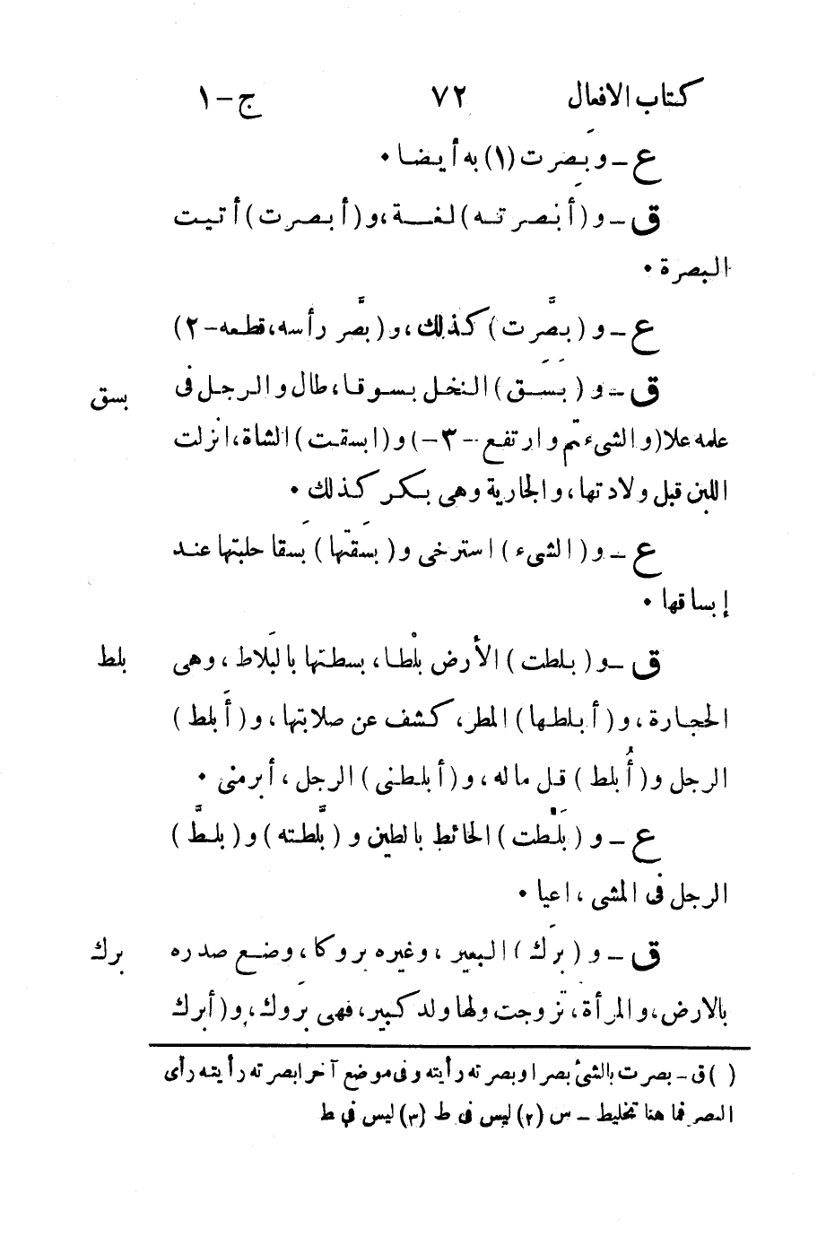1 ق- بصرت بالشيء بصرا وبصرته ورأيته وفي موضع آخر أبصرته رأيته رأي البصر فما هنا تخليط – س.