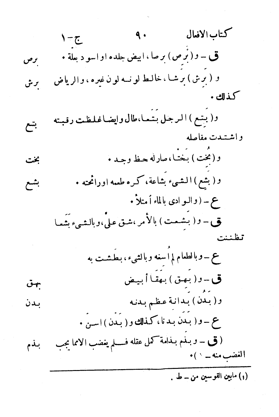 "ق- وبذَم بذامة كمل عقله فلم يغضب إلامما يجب الغضب منه-1". بذم