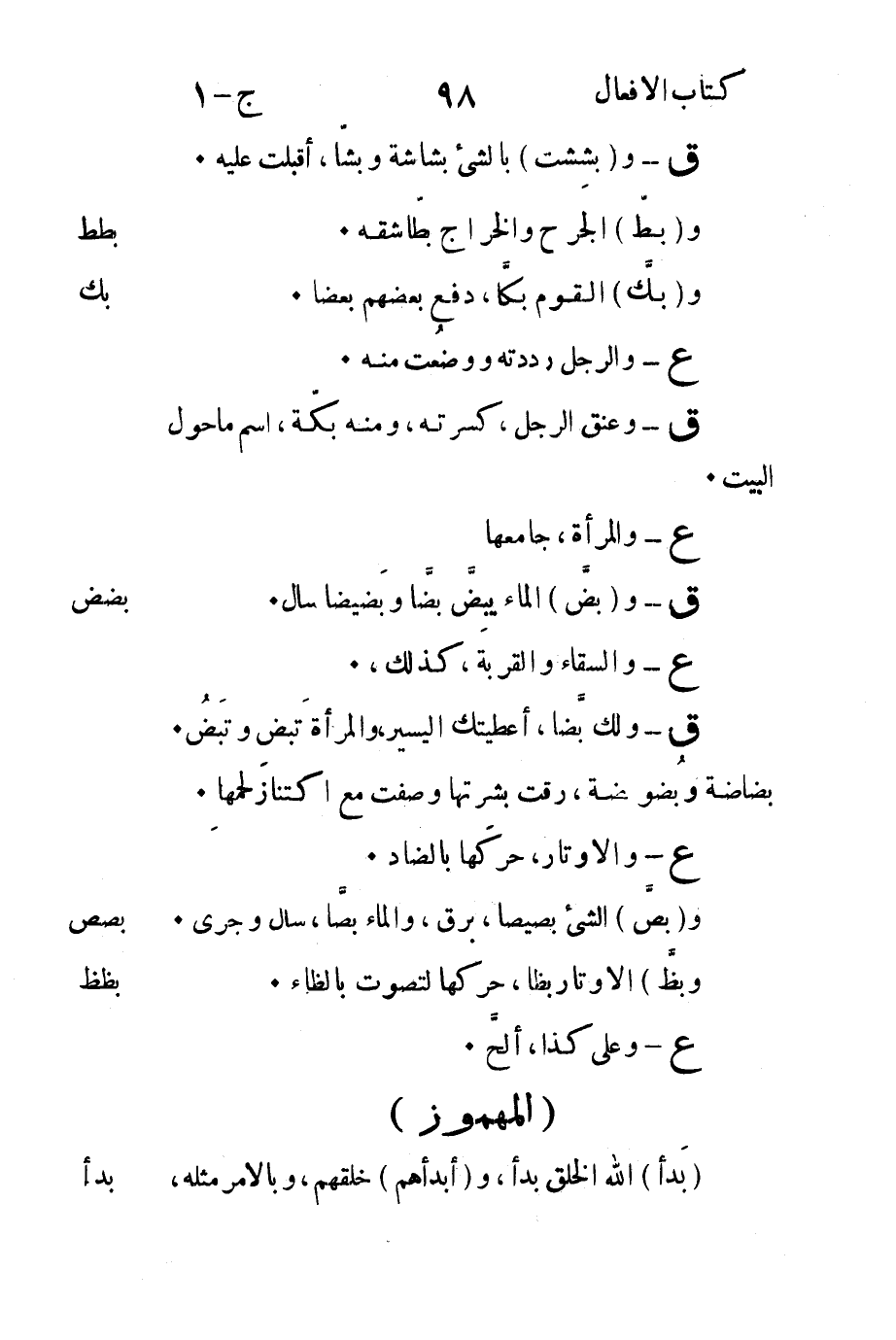 كتاب كتاب الأفعال (اسم الجزء: 1)