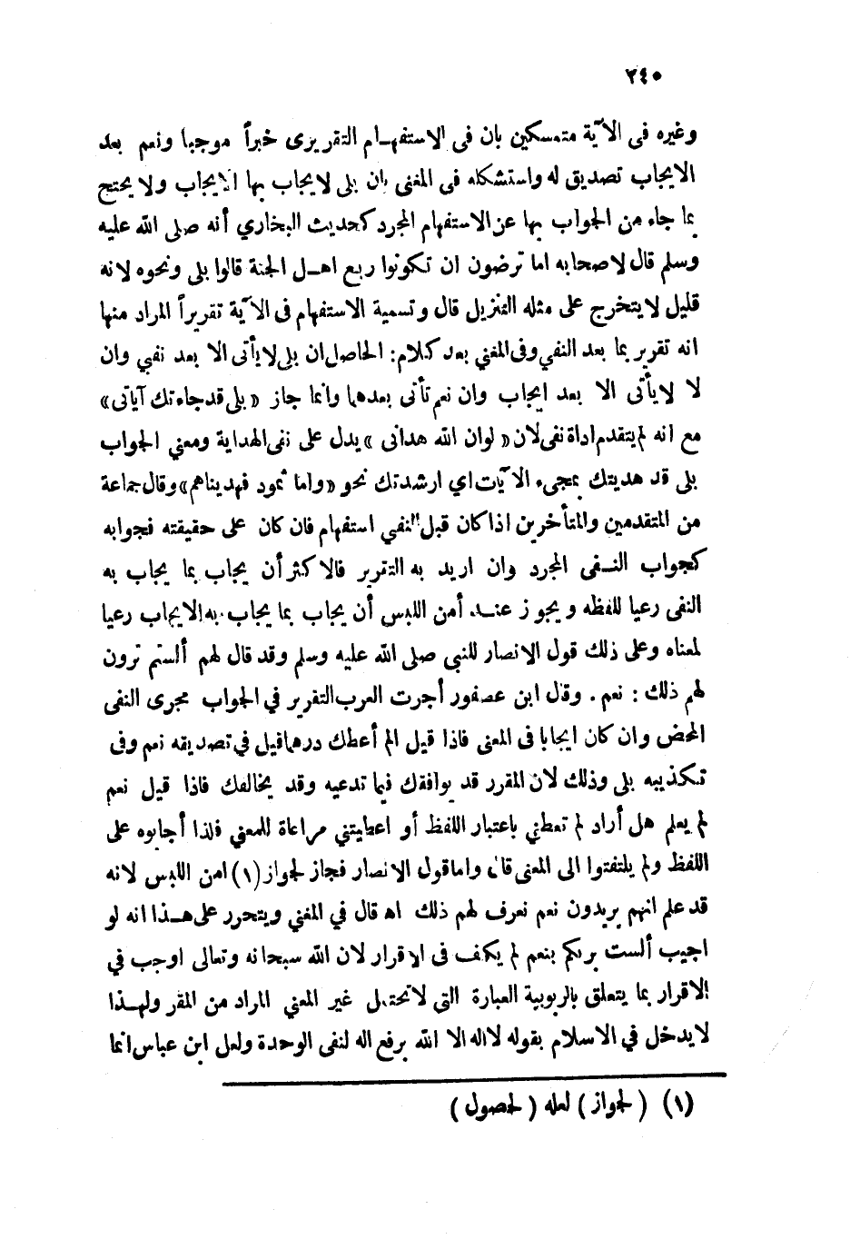 قيل نعم لم يعلم هل أراد لم تعطني باعتبار اللفظ أو أعطيتني مراعاة للمعنى فلذا أجابوه على اللفظ ولم يلتفتوا إلى المعنى قال وأما قول الأنصار فجاز لجواز أمن اللبس لأنه قد علم أنهم يريدون نعم نعرف لهم ذلك اهـ. قال في المغني ويتحرر على هذا أنه لو أجيب ألست بربكم بنعم لم يكف في الإقرار لأن الله سبحانه وتعالى أوجب في الإقرار بما يتعلق بالربوبية العبارة التي لا تحتمل غير المعنى المراد من المقر ولهذا لا يدخل في الإسلام بقوله لا إله إلاَّ الله برفع إله لنفي الوحدة ولعل ابن عباس إنما