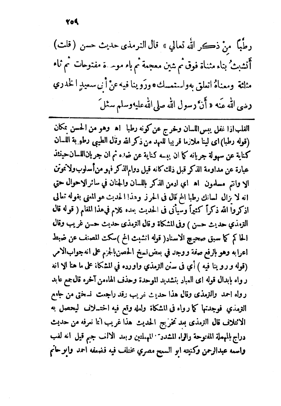 رَطْباً مِنْ ذكْرِ اللهِ تَعالى" قال الترمذي: حديث حسن، قلت: أتشبث بتاء مثناة فوق ثم شين معجمة ثم باء موحدة مفتوحات ثم ثاء