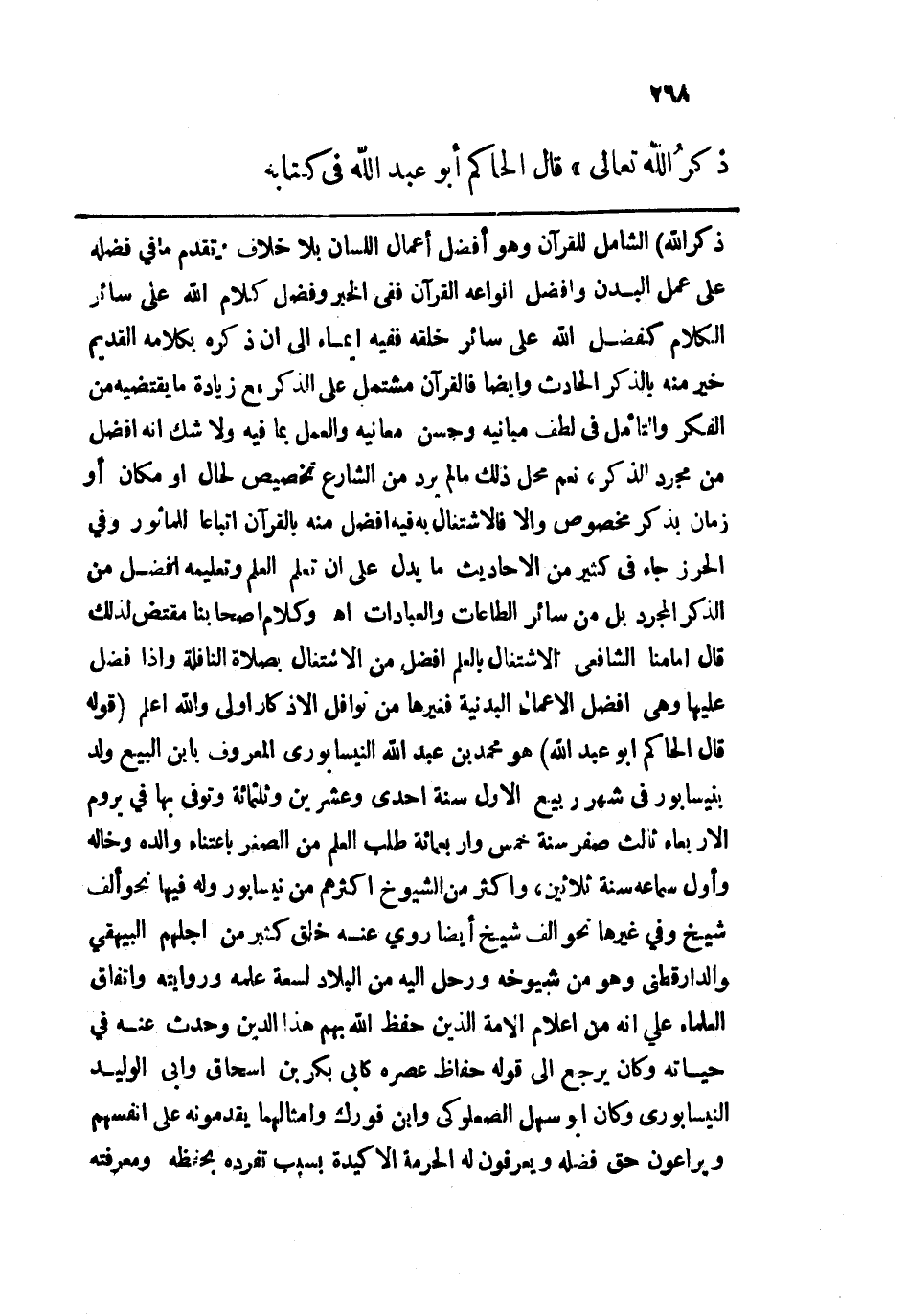 ذِكْرُ اللهِ تَعالى" قال الحاكم أبو عبد الله في كتابه