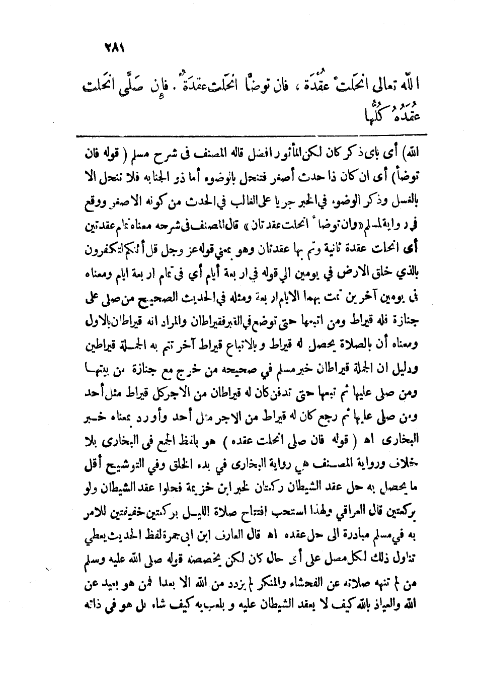 اللهَ تَعالى انْحَلَّتْ عُقْدَةٌ، فإنْ تَوَضأ أنْحَلَّتْ عُقْدَةٌ، فإنْ صَلَّى انْحَلَّتْ عُقَدُهُ كُلهَا