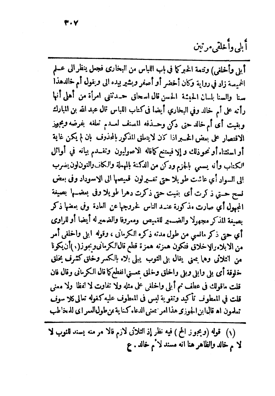 (أبلي وأخلقي) وتتمة الخبر كما في باب اللباس البخاري فجعل ينظر إلى علم الخميصة زاد في رواية وكان أخضر أو أصفر ويشير بيده إلي ويقول أم خالد هذا سنا والسنا بلسان الحبشة الحسن قال إسحاق حدثتني امرأة من أهلي أنها رأته على أم خالد وفي البخاري أيضاً في كتاب اللباس قال عبد الله بن المبارك وبقيت أي أم خالد حتى دكين وحذفه المصنف لعدم تعلقه بفرضه ويجوز الاقتصار على بعض الخبر إذا كان لا يتعلق المذكور بالمحذوف بأن لم يكن غاية أو استثناء أو نحو ذلك وإلَّا فيمتنع كما قاله الأصوليون وتقدم بيانه في أوائل الكتاب وأنه يسمى بالجزم ودكن من الدكنة بالمهملة والكاف والنون لون يضرب إلى السواد أي عاشت طويلاً حتى تغير لون قميصها إلى الاسوداد وفي بعض نسخ حتى ذكرت أي بقيت حتى ذكرت دهراً طويلاً