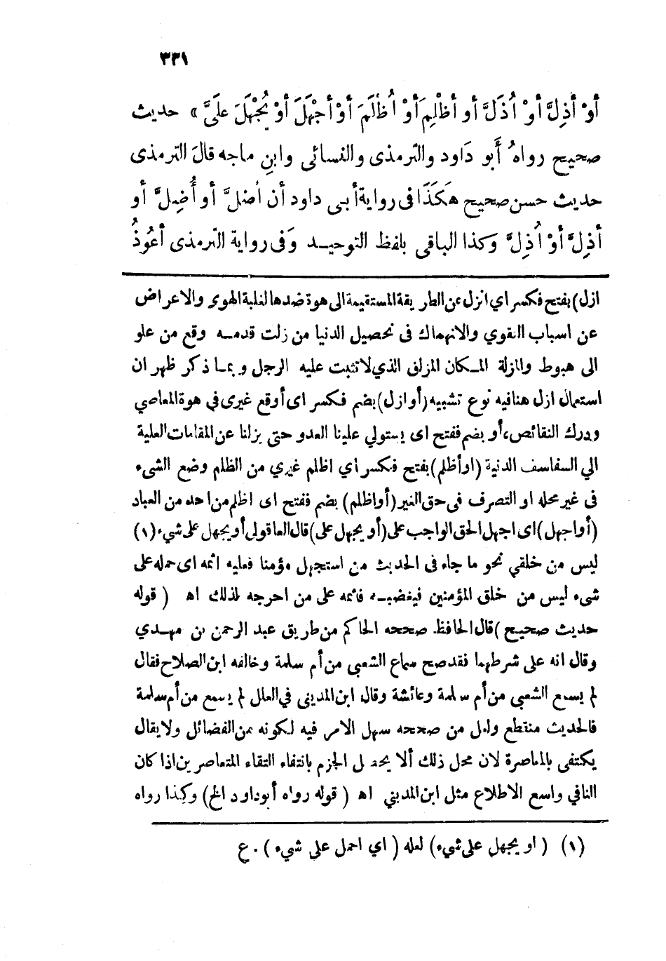 أو أَزِلَّ، أو أُزَلَّ، أو أَظْلِمَ أَوْ أُظْلَمَ، أو أَجْهَلَ أو يُجْهَلَ عَلَيَّ". حديث صحيح، رواه أبو داود، والترمذي، والنسائي، وابن ماجة. قال الترمذي: حديث صحيح. هكذا في رواية أبي داود: "أنْ أَضِلَّ أو أُضَلَّ، أو أزِل أو أُزِل"، وكذا الباقي بلفظ التوحيد.