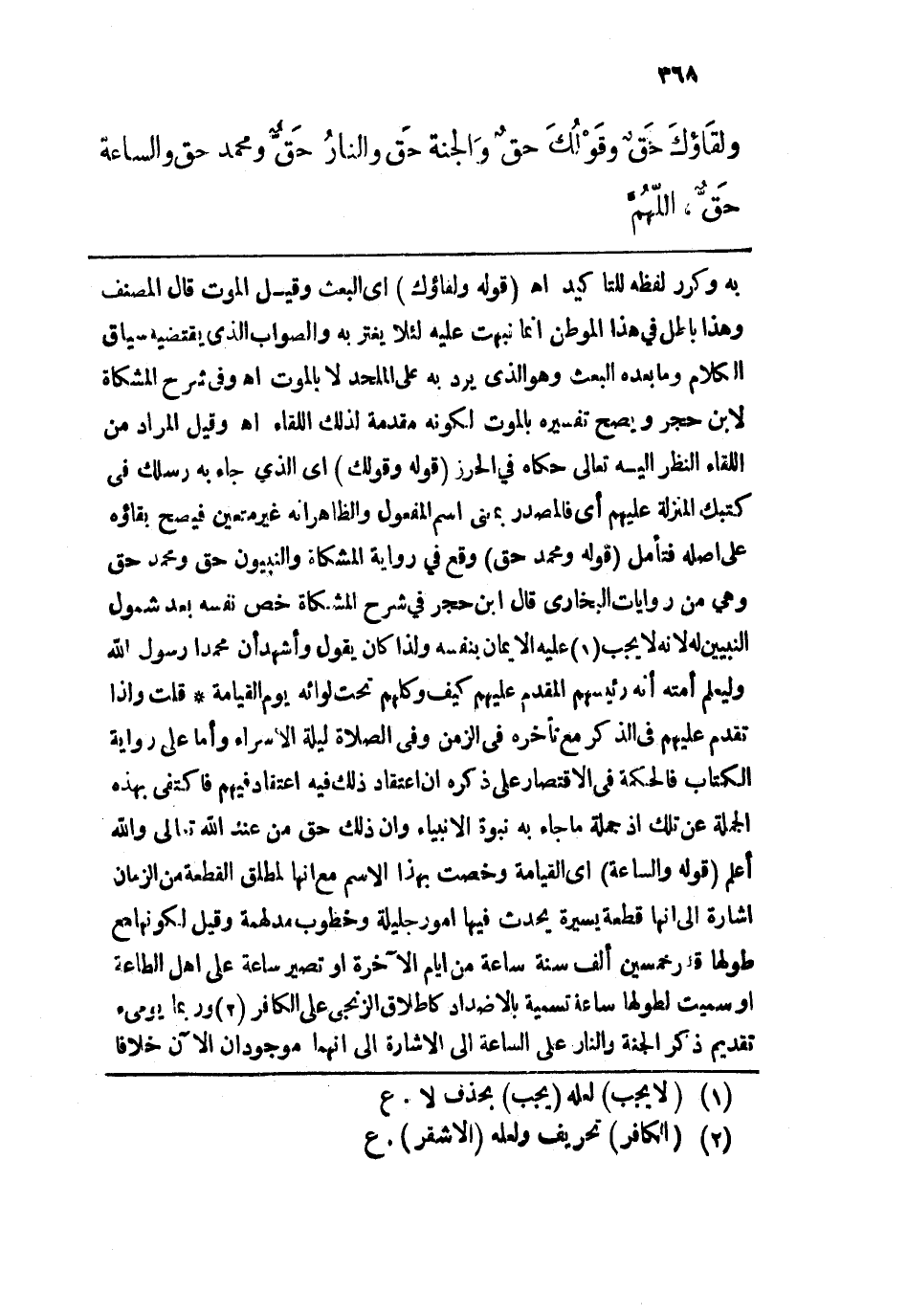 ولِقاؤُكَ حَق، وقولُكَ حَق، والجنةُ حَق، والنَّارُ حَق، ومحَمَّد حق، والساعَةُ حَق، اللهُم