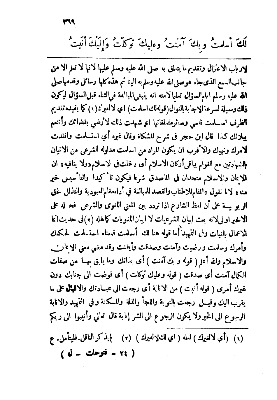 لكَ أَسلَمْتُ، وبِكَ آمَنْتُ، وعلَيكَ تَوَكَّلْتُ، وإليكَ أنبْتُ،