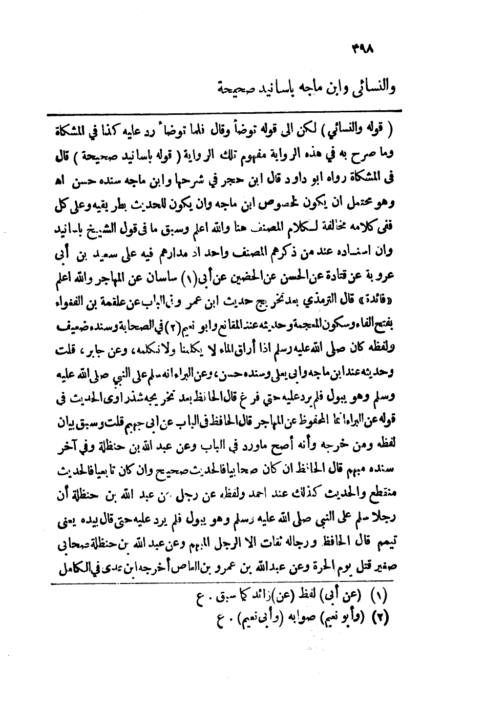 قوله: (والنسائي) لكن إلى قوله توضأ وقال فلما توضأ رد عليه كذا في المشكاة وما صرح به في هذه الرواية مفهوم تلك الرواية. قوله: (بأسانيد صحيحة) قال في المشكاة رواه أبو داود قال ابن حجر في شرحها وابن ماجة سنده حسن اهـ، وهو محتمل أن يكون لخصوص ابن ماجة وأن يكون للحديث بطريقيه وعلى كل ففي كلامه مخالفة لكلام المصنف هنا والله أعلم، وسبق ما في قول الشيخ بأسانيد وإن إسناده عند من ذكرهم المصنف واحد إذ مدارهم فيه على سعيد بن أبي عروبة عن قتادة عن الحسن عن الحضين عن أبي ساسان عن المهاجر والله أعلم.