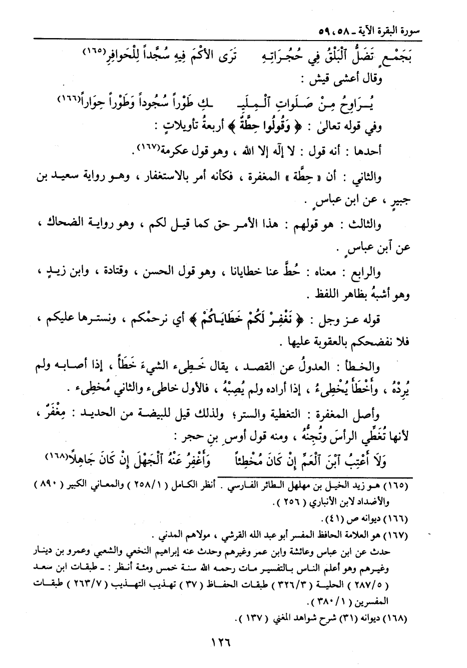 وفي قوله تعالى: {وَقُولُوا حِطَّةٌ} أربعةُ تأويلاتٍ: أحدها: أنه قول: لا إله إلا الله , وهو قول عكرمة. والثاني: أن (حِطَّة) المغفرة , فكأنه أمر بالاستغفار , وهو رواية سعيد بن جبيرٍ , عن ابن عباسٍ. والثالث: هو قولهم: هذا الأمر حق كما قيل لكم , وهو رواية الضحاك , عن ابن عباسٍ. والرابع: معناه: حُطَّ عنا خطايانا , وهو قول الحسن , وقتادة , وابن زيدٍ , وهو أشبهُ بظاهر اللفظ. قوله عز وجل: {نَغْفِرْ لَكُمْ خَطَايَاكُمْ} أي نرحمْكم , ونسترها عليكم , فلا نفضحكم بالعقوبة عليها. والخطأ: العدولُ عن القصد , يقال خَطِئ الشيءَ خَطَأً , إذا أصابه ولم يُرِدْهُ , وأَخْطَأَ يُخْطِئُ , إذا أراده ولم يُصِبْهُ , فالأول خاطئ والثاني مُخطِئ. وأصل المغفرة: التغطية والستر؛ ولذلك قيل للبيضة من الحديد: مِغْفَرٌ , لأنها تُغَطِّي الرأسَ وتُغَطِّي الرأسَ وتُجِنُّهُ , ومنه قول أوسِ بنِ حجر: