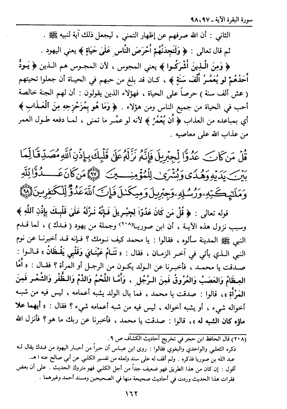{قل من كان عدوا لجبريل فإنه نزله على قلبك بإذن الله مصدقا لما بين يديه وهدى وبشرى للمؤمنين من كان عدوا لله وملائكته ورسله وجبريل وميكال فإن الله عدو للكافرين} قوله تعالى: {قُلْ مَن كَانَ عَدُوّا لِجِبْرِيلَ فَإِنَّهُ نَزَّلَهُ عَلَى قَلْبِكَ بِإِذْنِ اللهِ} وسبب نزول هذه الآية , أن ابن صوريا وجملة من يهود (فدك) , لما قدم النبي صلى الله عليه وسلم المدينة سألوه , فقالوا: يا محمد كيف نومك؟ فإنه قد أخبرنا عن نوم النبي الذي يأتي في آخر الزمان , فقال: (تَنَامُ عَيْنَايَ وَقَلْبِي يَقْظَانُ) قالوا: صدقت يا محمد , فأخبرنا عن الولد يكون من الرجل أو المرأة؟ فقال: (أَمَّا العِظَامُ وَالعَصَبُ وَالعُرُوقُ فَمِنَ الرَّجُلِ , وَأَمَّا اللَّحْمُ وَالدَّمُ وَالظُّفْر وَالشَّعْر فَمِنَ المَرْأَةِ) قالوا: صدقت يا محمد , فما بال الولد يشبه أعمامه , ليس فيه من شبه أخواله شيء , أو يشبه أخواله , ليس فيه من شبه أعمامه شيء؟ فقال: (أيهما علا ماؤه كان الشبه له) قالوا: صدقت يا محمد , فأخبرنا عن ربك ما هو؟ فأنزل الله