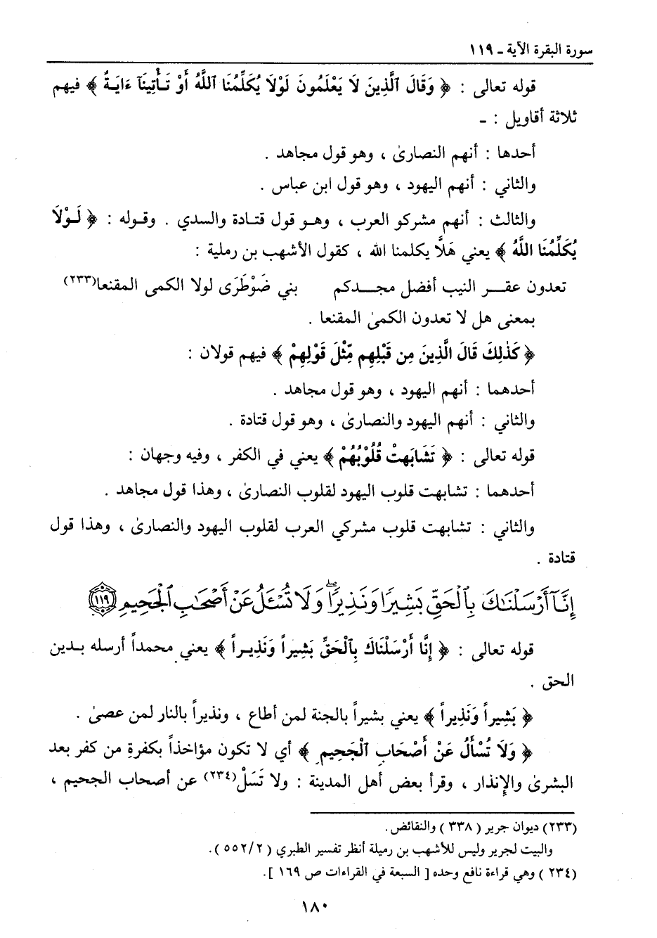 {إنا أرسلناك بالحق بشيرا ونذيرا ولا تسأل عن أصحاب الجحيم