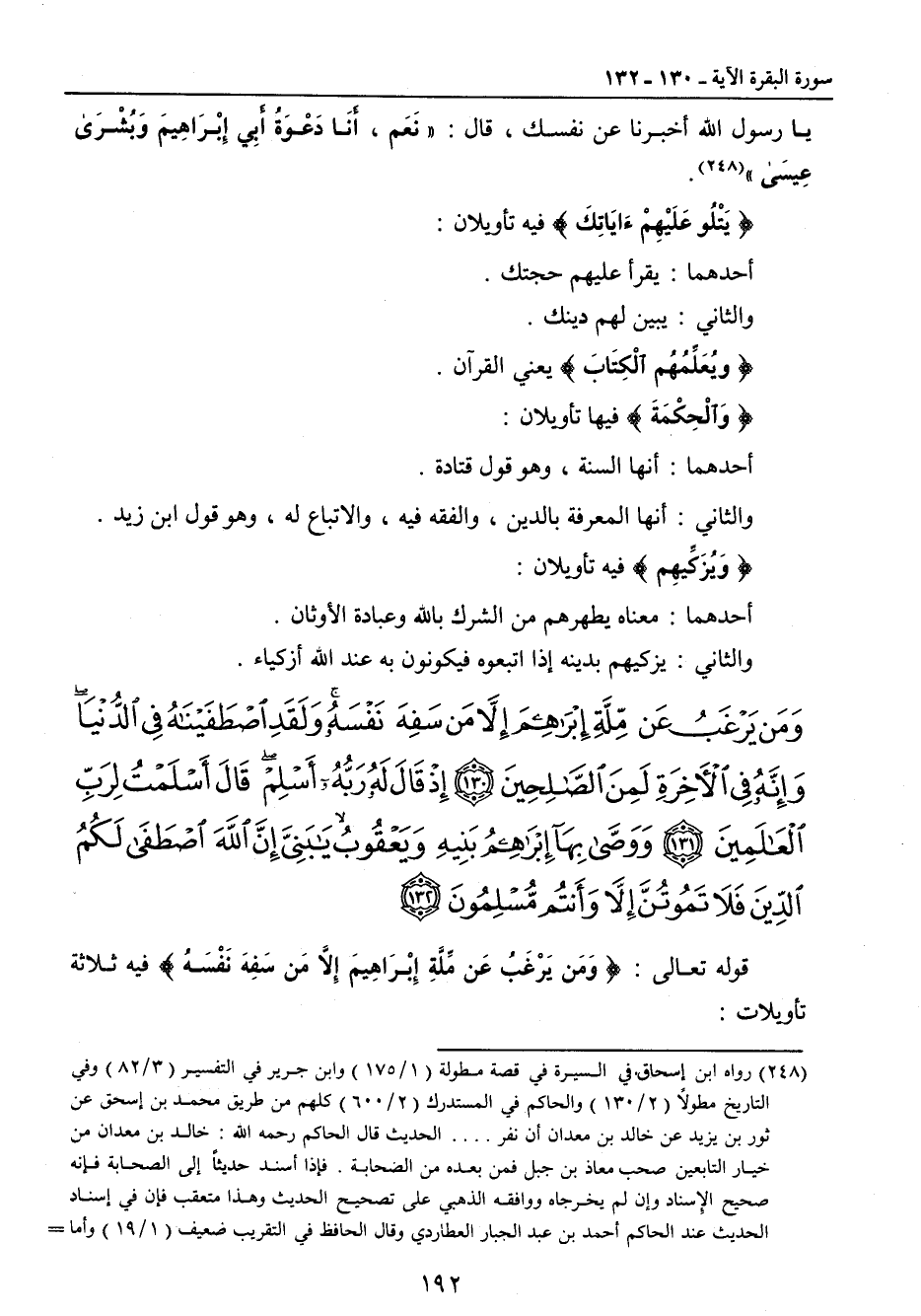 {ومن يرغب عن ملة إبراهيم إلا من سفه نفسه ولقد اصطفيناه في الدنيا وإنه في الآخرة لمن الصالحين إذ قال له ربه أسلم قال أسلمت لرب العالمين ووصى بها إبراهيم بنيه ويعقوب يا بني إن الله اصطفى لكم الدين فلا تموتن إلا وأنتم مسلمون} قوله تعالى: {وَمَن يَرْغَبُ عَن مِّلَّةِ إبْرَاهِيمَ إلاَّ مَن سَفِهَ نَفْسَهُ} فيه ثلاثة تأويلات: