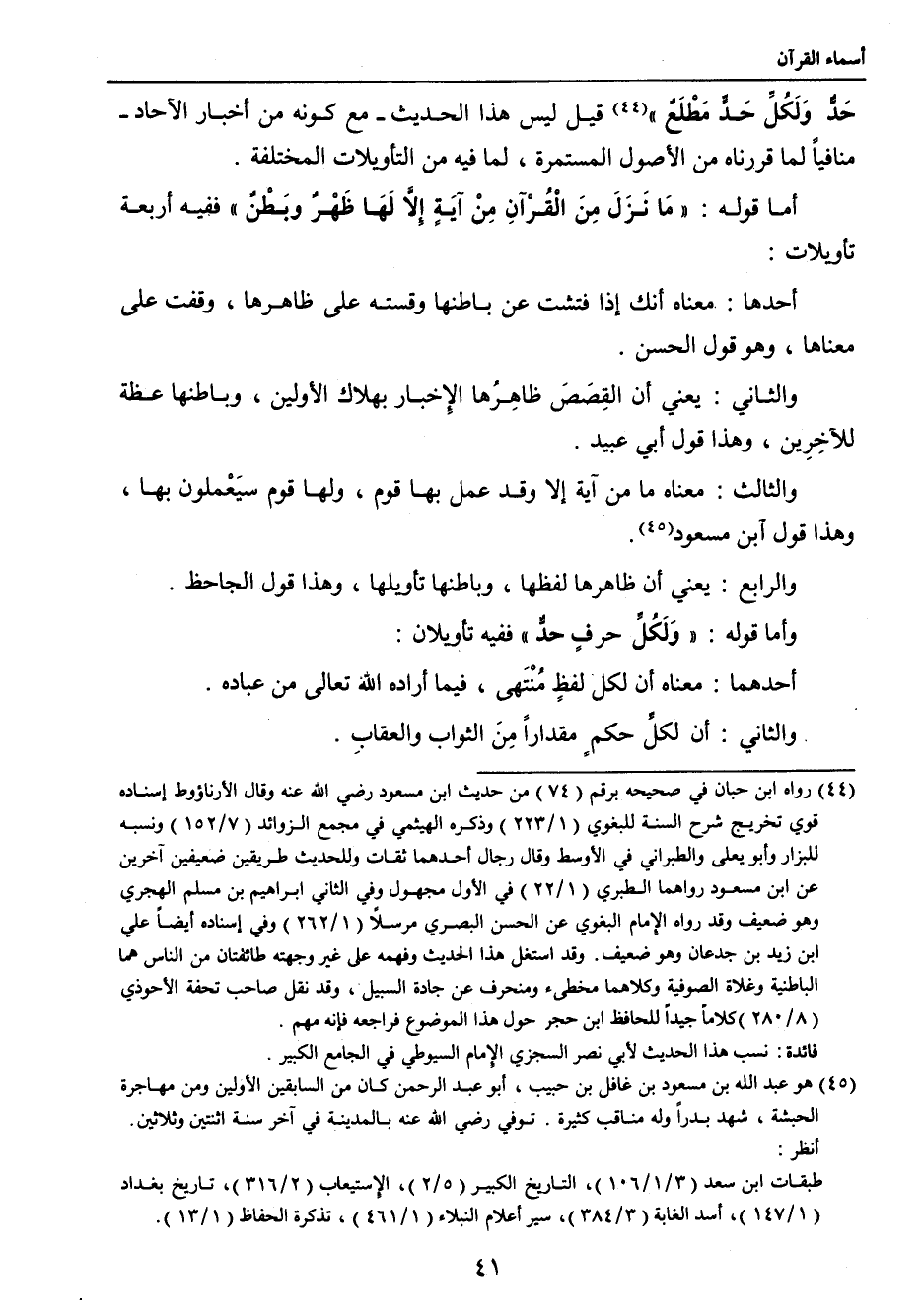 وأما قوله: " ولكل حرف حد " ففيه تأويلان:
