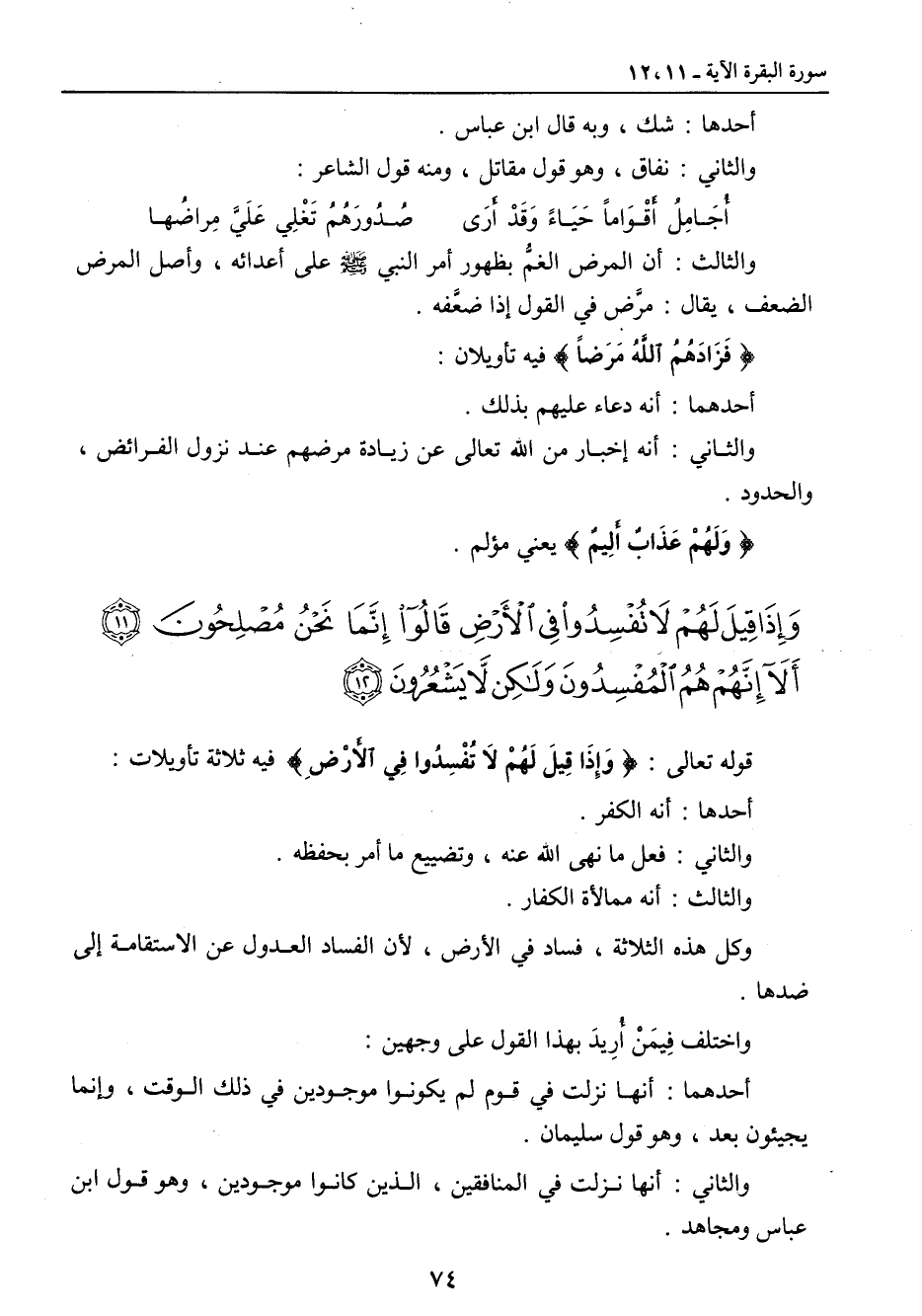 {وإذا قيل لهم لا تفسدوا في الأرض قالوا إنما نحن مصلحون ألا إنهم هم المفسدون ولكن لا يشعرون} قوله تعالى: {وَإِذَا قِيلَ لَهُمْ لاَ تُفْسِدُوا في الأَرضِ} فيه ثلاثة تأويلات: أحدها: أنه الكفر. والثاني: فعل ما نهى الله عنه , وتضييع ما أمر بحفظه. والثالث: أنه ممالأة الكفار. وكل هذه الثلاثة , فساد في الأرض , لأن الفساد العدول عن الاستقامة إلى ضدها. واختلف فِيمَنْ أُريدَ بهذا القول على وجهين: أحدهما: أنها نزلت في قوم لهم يكونوا موجودين في ذلك الوقت , وإنما يجيئون بعد , وهو قول سليمان. والثاني: أنها نزلت في المنافقين , الذين كانوا موجودين , وهو قول ابن عباس ومجاهد.