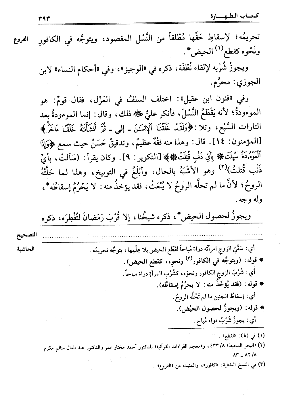 تَحْرِيمُهُ، لِإِسْقَاطِ حَقِّهَا مُطْلَقًا، مِنْ النَّسْلِ الْمَقْصُودِ، ويتوجه في الكافور ونحوه كقطع1 الْحَيْضِ.