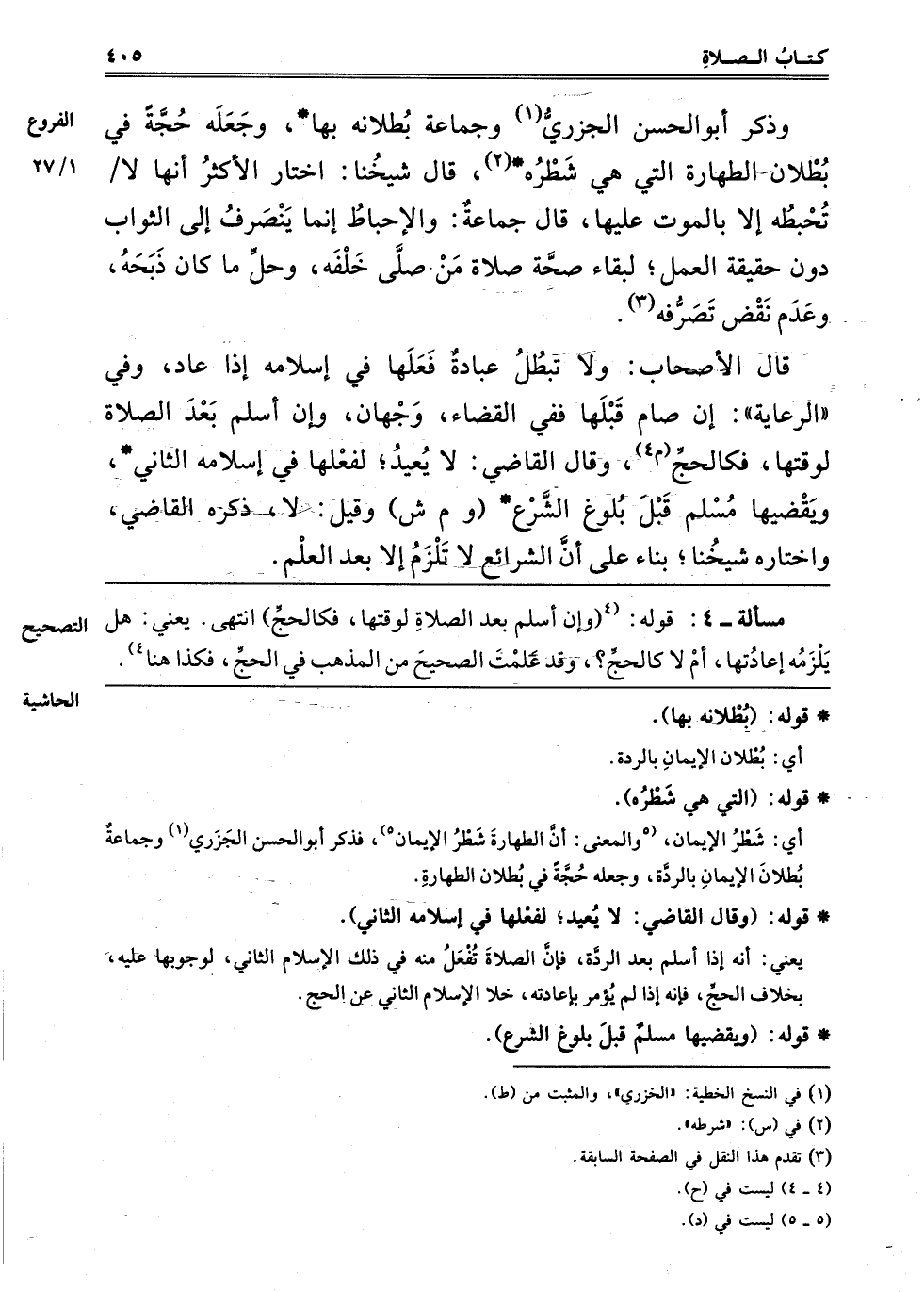 ـــــــــــــــــــــــــــــQمَسْأَلَةُ -4: قَوْلُهُ: 4"وَإِنْ أَسْلَمَ بَعْدَ الصَّلَاةِ لِوَقْتِهَا فَكَالْحَجِّ" انْتَهَى، يَعْنِي هَلْ يَلْزَمُهُ إعَادَتُهَا أَمْ لَا كَالْحَجِّ؟ وَقَدْ عَلِمْت الصَّحِيحَ مِنْ الْمَذْهَبِ في الحج فكذا هنا4.