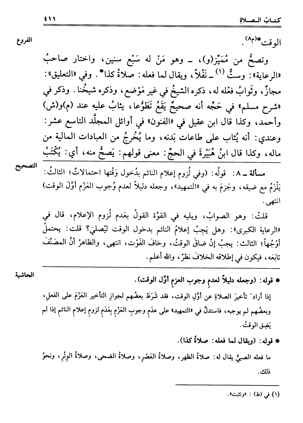 وَتَصِحُّ مِنْ مُمَيِّزٍ "و" صَلَاةُ كذا. وفي التعليق وَهُوَ مَنْ لَهُ سَبْعُ سِنِينَ وَاخْتَارَ صَاحِبُ الرعاية وست1 نَفْلًا، وَيُقَالُ لِمَا فَعَلَهُ صَلَاةُ كَذَا. وَفِي التَّعْلِيقِ مَجَازٌ، وَثَوَابُ فِعْلِهِ لَهُ، ذَكَرَهُ الشَّيْخُ فِي غَيْرِ مَوْضِعٍ، وَذَكَرَهُ شَيْخُنَا وَذَكَرَ فِي شَرْحِ مُسْلِمٍ فِي حَجِّهِ أَنَّهُ صَحِيحٌ يَقَعُ تَطَوُّعًا يُثَابُ عَلَيْهِ عِنْدَ مَالِكٍ وَالشَّافِعِيِّ وَأَحْمَدَ، وَكَذَا قَالَ ابْنُ عَقِيلٍ فِي الْفُنُونِ فِي أَوَائِلِ الْمُجَلَّدِ التَّاسِعَ عَشَرَ: وَعِنْدِي أَنَّهُ يُثَابُ عَلَى طَاعَاتِ بَدَنِهِ، وَمَا يَخْرُجُ مِنْ الْعِبَادَاتِ الْمَالِيَّةِ مِنْ مَالِهِ، وَكَذَا قَالَ ابْنُ هُبَيْرَةَ فِي الْحَجِّ: مَعْنَى قَوْلِهِمْ يَصِحُّ مِنْهُ أَيْ يكتب