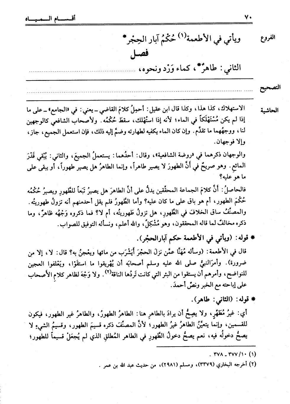 فَصْلٌ: الثَّانِي: طَاهِرٌ،