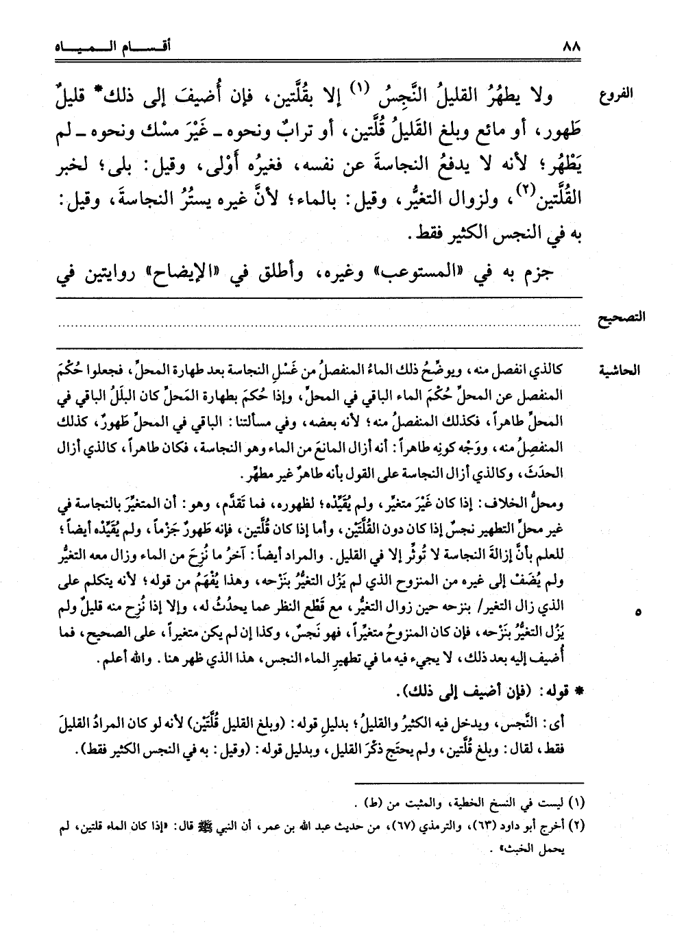 2 أخرج أبو داود "63"، والترمذي "67"، من حديث عبد الله من عُمَرَ، أَنَّ النَّبِيَّ صَلَّى اللَّهُ عَلَيْهِ وَسَلَّمَ قَالَ: "إذا كان الماء قلتين، لم يحمل الخبث".