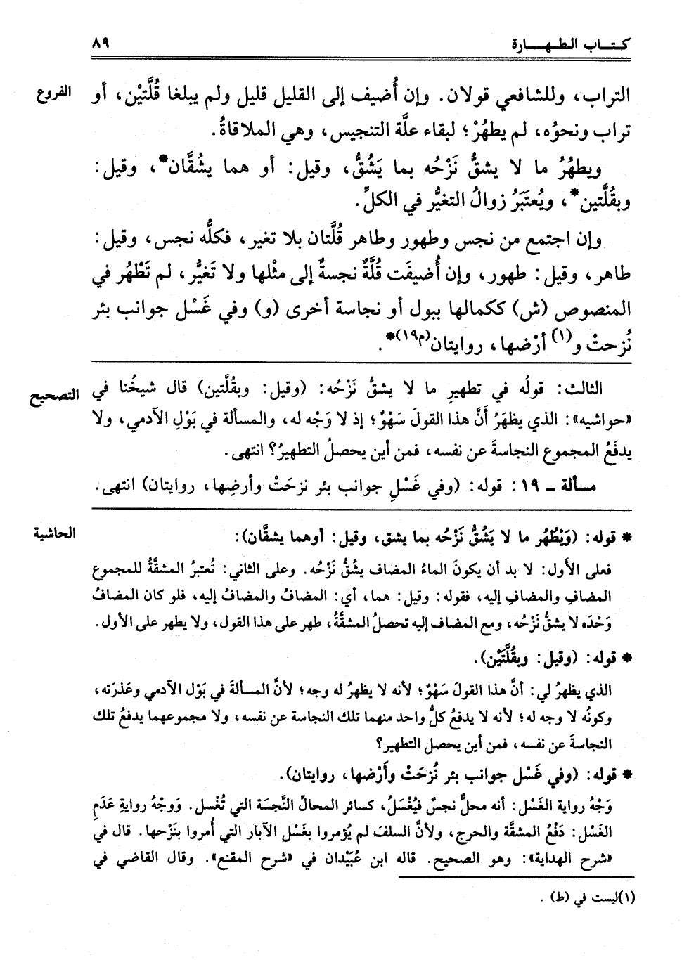 مَسْأَلَةٌ – 19: وَفِي غَسْلِ جَوَانِبِ بِئْرٍ نُزِحَتْ وَأَرْضِهَا روايتان، انتهى.