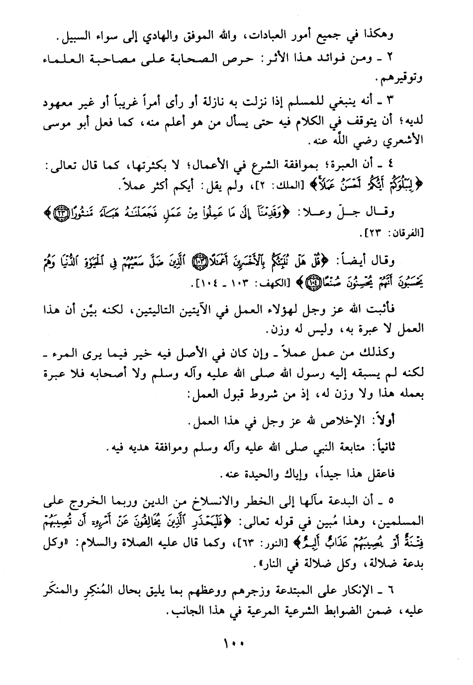 4 - أن العبرة؛ بموافقة الشرع في الأعمال؛ لا بكثرتها، كما قال تعالى: {لِيَبْلُوَكُمْ أَيُّكُمْ أَحْسَنُ عَمَلًا} [الملك: 2]، ولم يقل: أيكم أكثر عملًا.