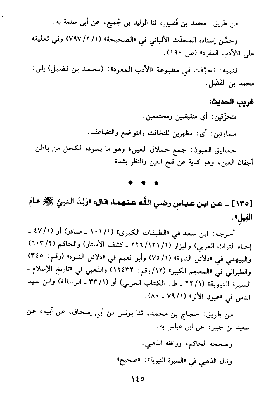 135 - عن ابن عباسيٍ - رضي الله عنهما -، قال: "وُلِدَ النبيُّ - صلى الله عليه وسلم - عامَ الفِيلِ".