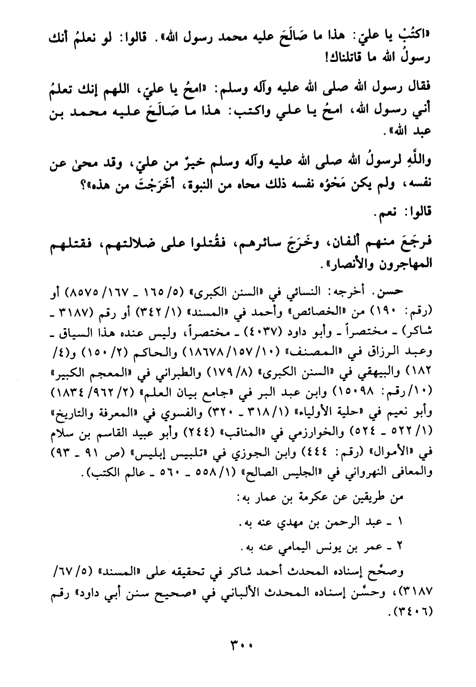 فقال رسول الله - صلى الله عليه وآله وسلم -: "امحُ يا عليّ، اللهم إنك تعلمُ أني رسول الله، امحُ يا علي واكتب: هدا ما صَالَحَ عليه محمد بن عبد الله".