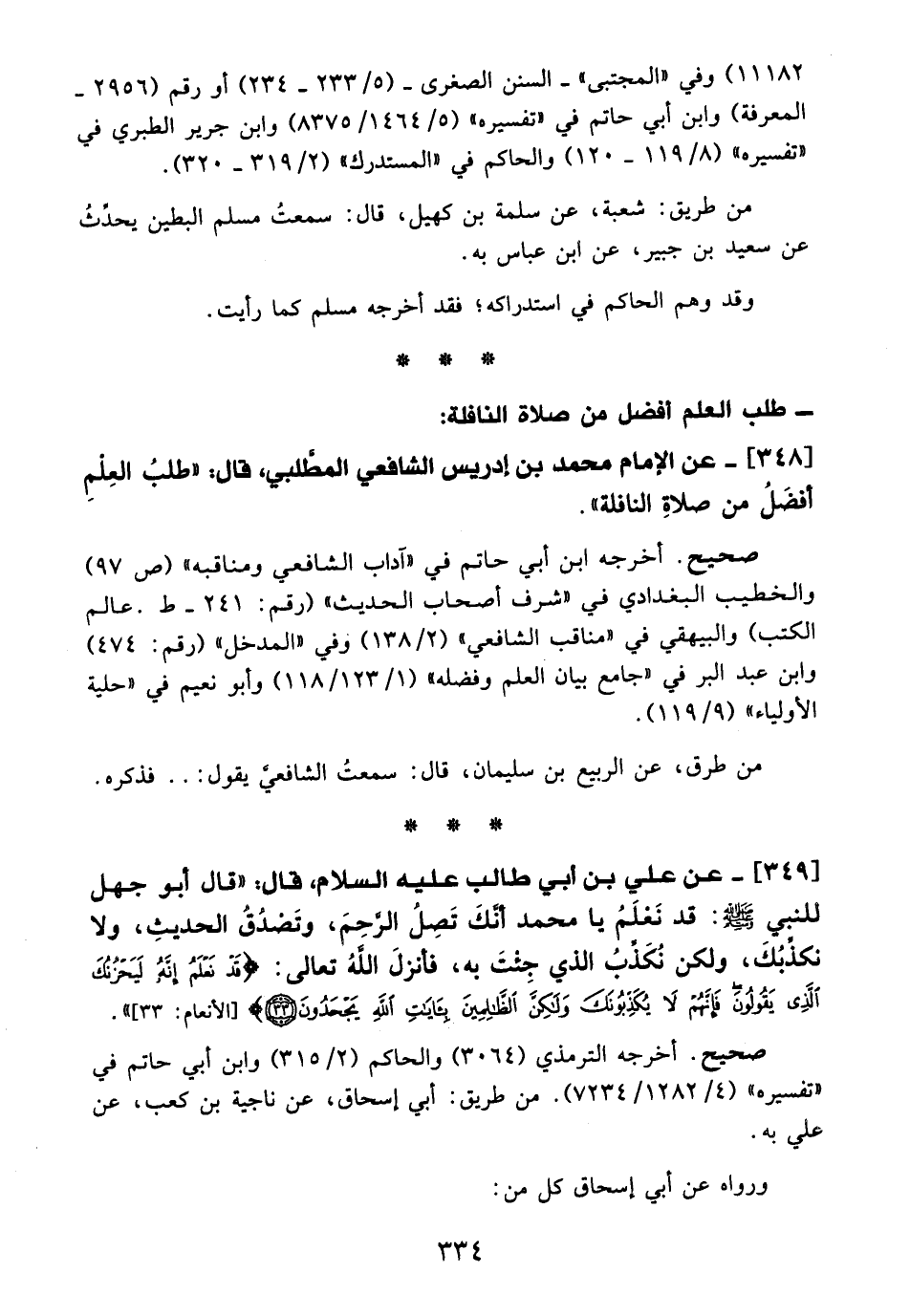 348 - عن الإمام محمد بن إدريس الشافعي المطَّلبي، قال: "طلبُ العِلْمِ أفضَلُ من صلاةِ النافلة".