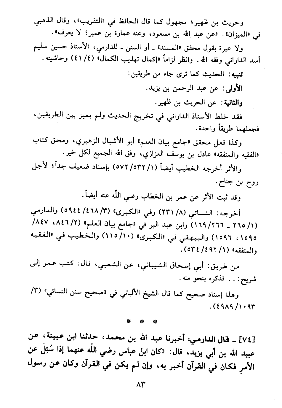 وكذا فعل محقق "جامع بيان العلم" أبو الأشبال الزهيري، ومحقق كتاب "الفقيه والمتفقه" عادل بن يوسف العزازي، وفق الله الجميع لكل خير.