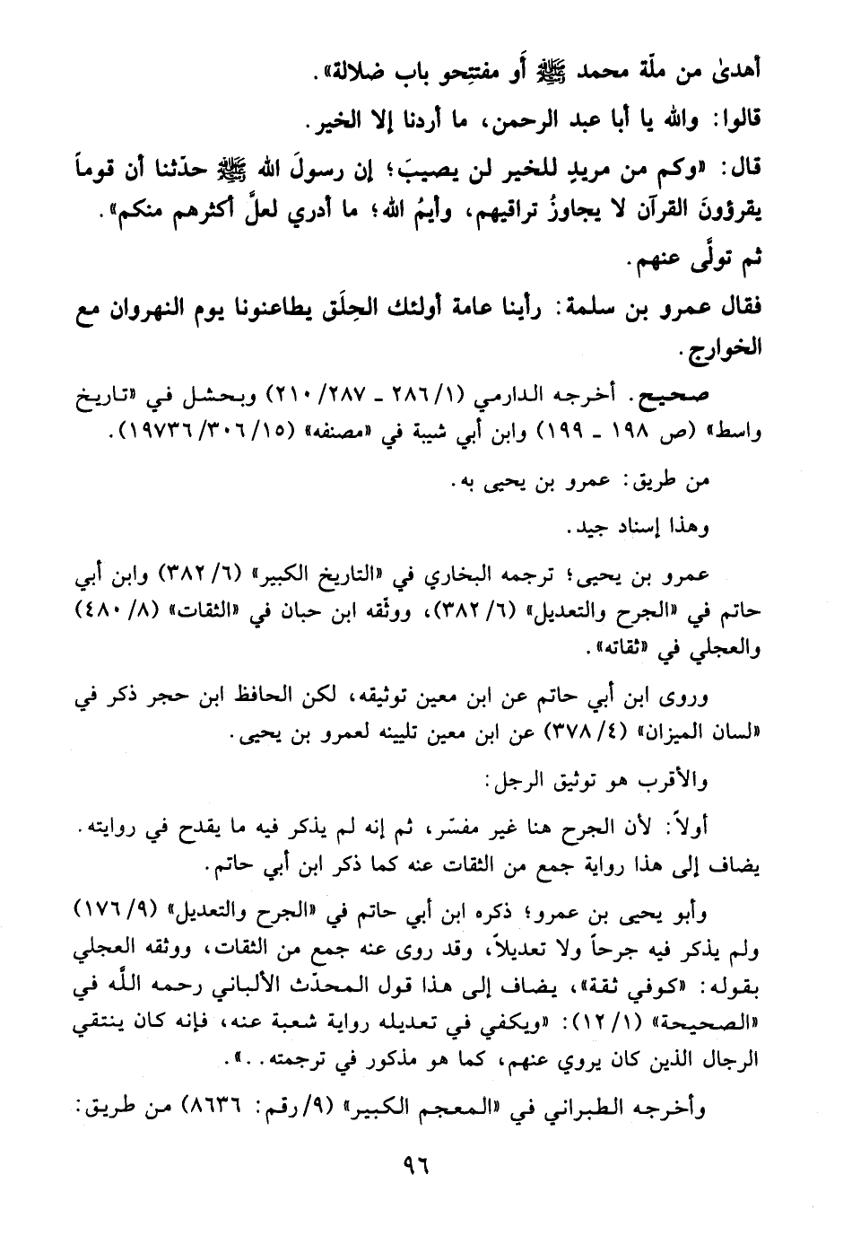 وأبو يحيى بن عمرو؛ ذكره ابن أبي حاتم في "الجرح والتعديل" (9/ 176) ولم يذكر فيه جرحًا ولا تعديلًا، وقد روى عنه جمع من الثقات، ووثقه العجلي بقوله: "كوفي ثقة"، يضاف إلى هذا قول المحدّث الألباني -رَحِمَهُ اللهُ- في "الصحيحة" (1/ 12): "ويكفي في تعديله رواية شعبة عنه، فإنه كان ينتقي الرجال الذين كان يروي عنهم، كما هو مذكور في ترجمته .. ".