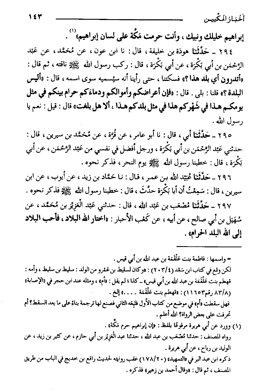 ٢٩٢- حَدَّثَنا مُصْعَب بْنُ عَبْد اللَّه، قَالَ: حَدَّثَنِي عَبْد الْعَزِيْز بْنُ أَبِي حَازِمٍ، عَنْ كَثِيرِ بْنِ زَيْدٍ، عَنِ الْوَلِيدِ بْنِ رَبَاح، عَنْ أَبِي هُرَيْرَةَ أَنّ رَسُولَ اللَّه صَلَّى اللَّهُ عَلَيْهِ وَسَلَّمَ قَالَ: إِنَّ إِبْرَاهِيمَ حرَّم مَكَّة.