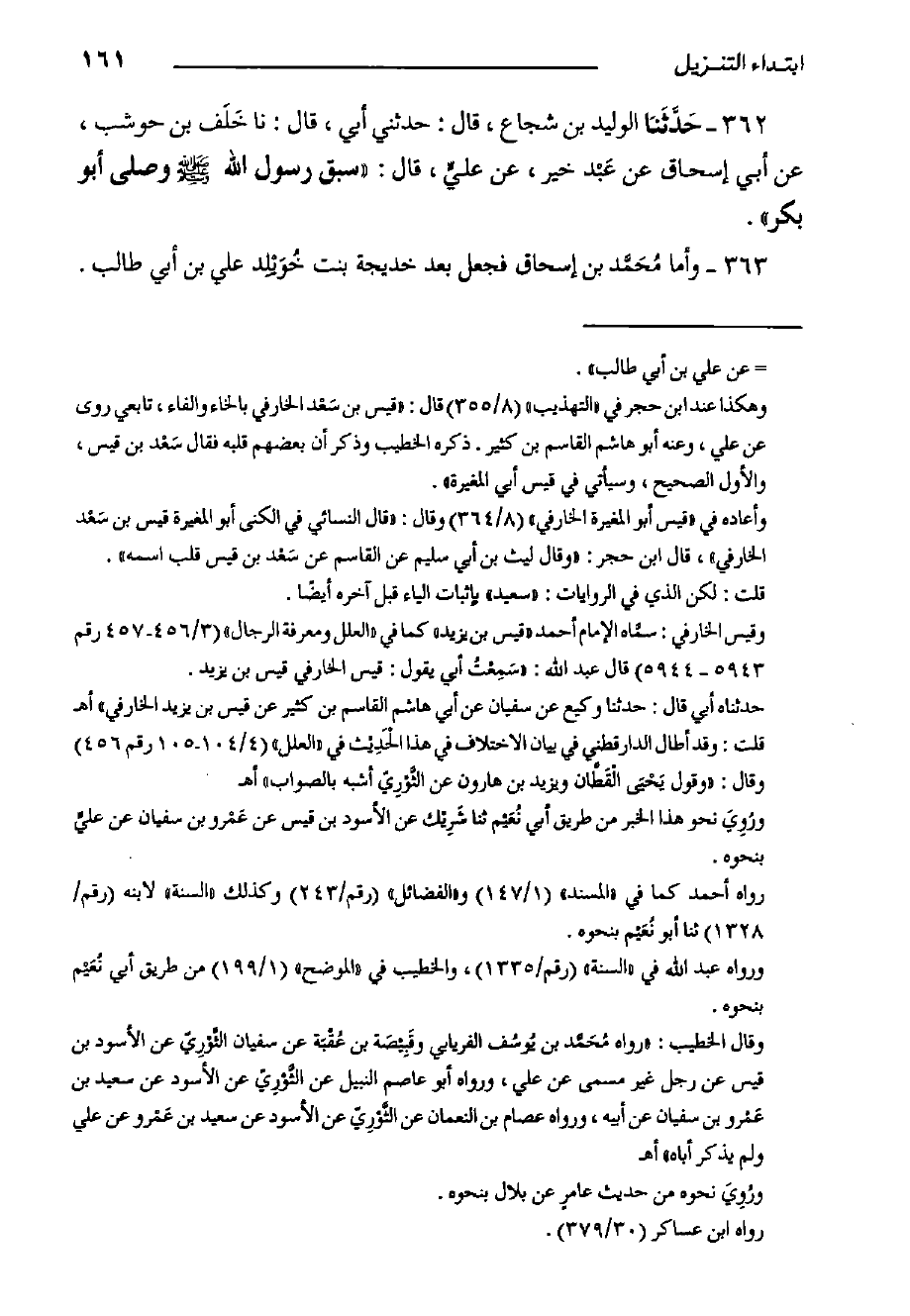 ٣٦٣- وأما مُحَمَّد بْن إِسْحَاقَ فجعل بعد خديجة بنت خُوَيْلِد عَلِيّ بْن أبي طالب.