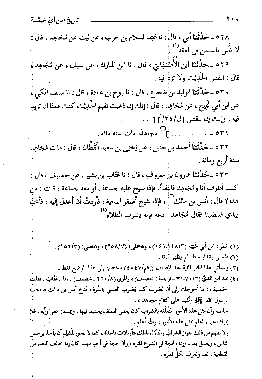 ٥٣٢- حَدَّثَنا أَحْمَد بْن حنبل، عَنْ يَحْيَى بْن سَعِيدٍ الْقَطَّان، قَالَ: مات مُجَاهِد سنة أربع ومئة.