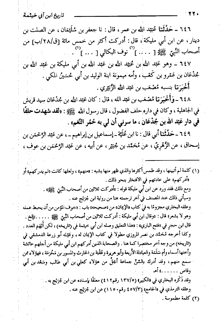 ٦٤٦- حَدَّثَنا عُبَيْد اللَّهِ بْنُ عُمَرَ، قال: حدثنا جَعْفَر بْن سُلَيْمَان، عَنِ الصلت بْن دينار، عَنِ ابن أبي مليكة، قَالَ: أدركت أكثر من خمس مئة [ق/٢٨/ب] من أصحاب النَّبِيّ صَلَّى اللَّهُ عَلَيْهِ وَسَلَّمَ ... نوف البكالي ... .