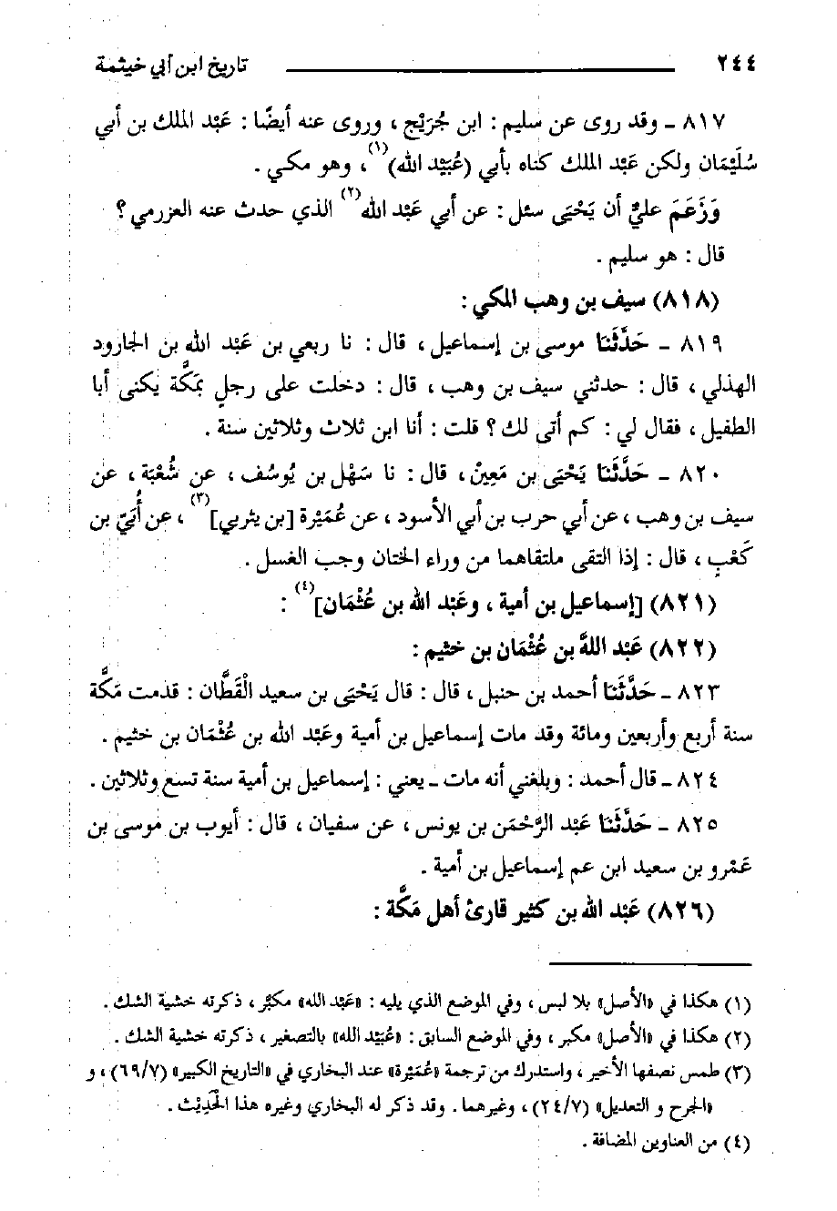 ٨٢٢) عَبْد اللهَّ بْن عُثْمَان بْنِ خثيم: