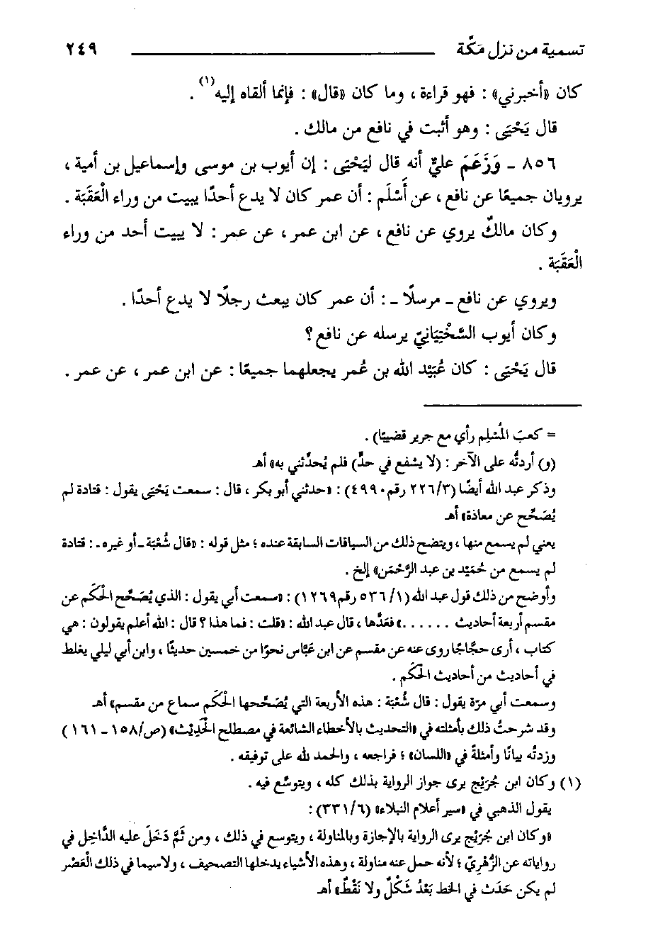 ٨٥٦ - وَزَعَمَ عليٌّ أَنَّهُ قَالَ ليَحْيَى: إن أيوب بْن مُوسَى وإسماعيل بْن أمية, يرويان جميعًا عَنْ نَافِعٍ, عَنْ أَسْلَم: أن عُمَر كَانَ لا يدع أحدا يبيت من وراء الْعَقَبَة.