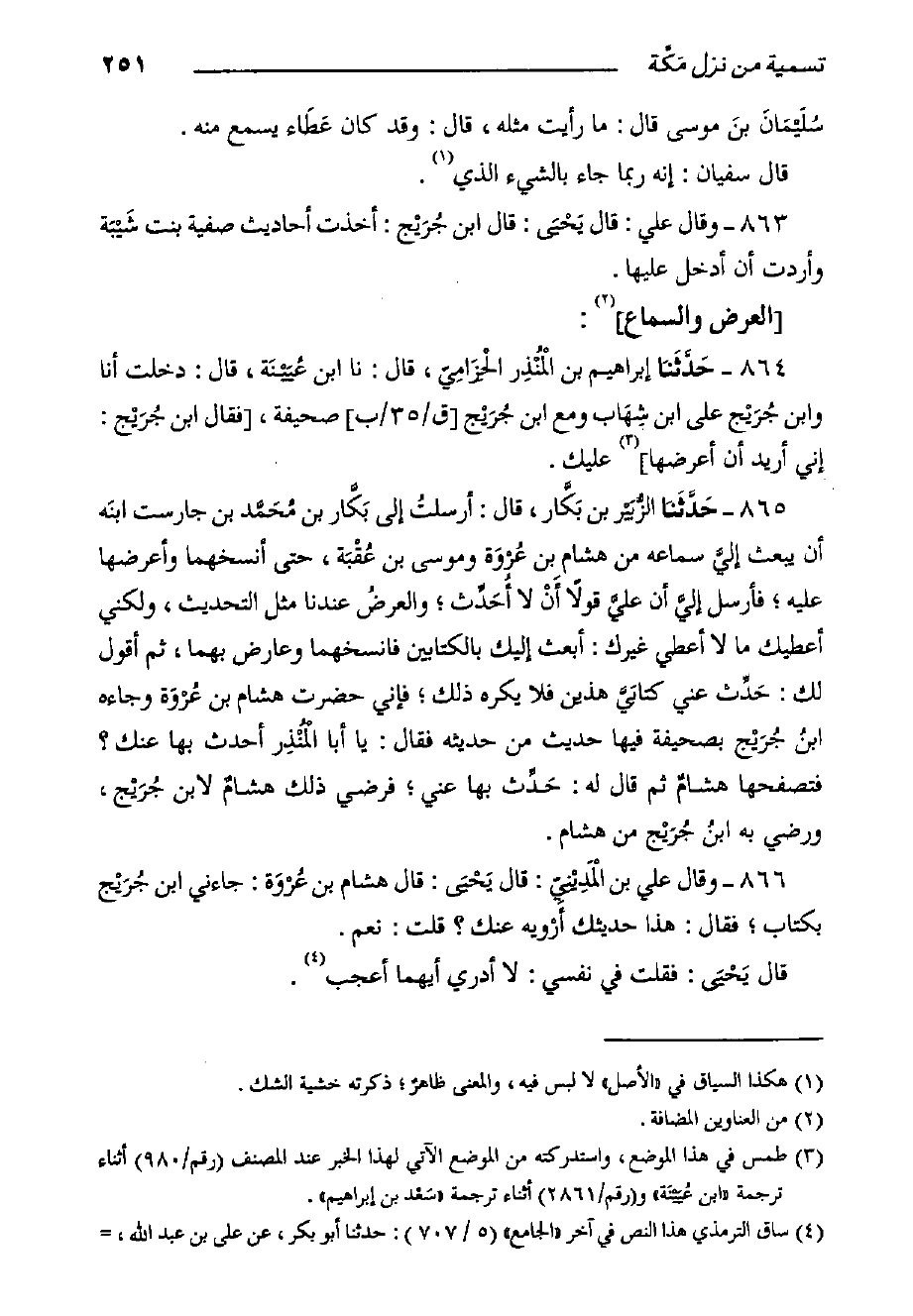 ٨٦٤- حَدَّثَنا إِبْرَاهِيم بن الْمُنْذِر الْحِزَامِيّ, قال: حدثنا ابن عُيَيْنَة, قَالَ: دخلت أنا وابن جُرَيْج عَلَى ابن شِهَاب ومع ابن جُرَيْج [ق/٣٥/ب] صحيفة, فَقَالَ ابن جُرَيْج: إني أريد أن أعرضها عليك.