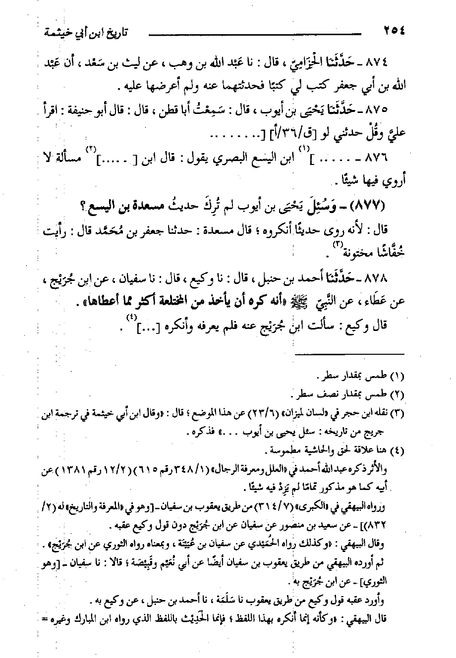 ٨٧٦ - ... ابن اليسع البصري يَقُولُ: قَالَ ابن ... مسألة لا أروي فيها شيئًا.