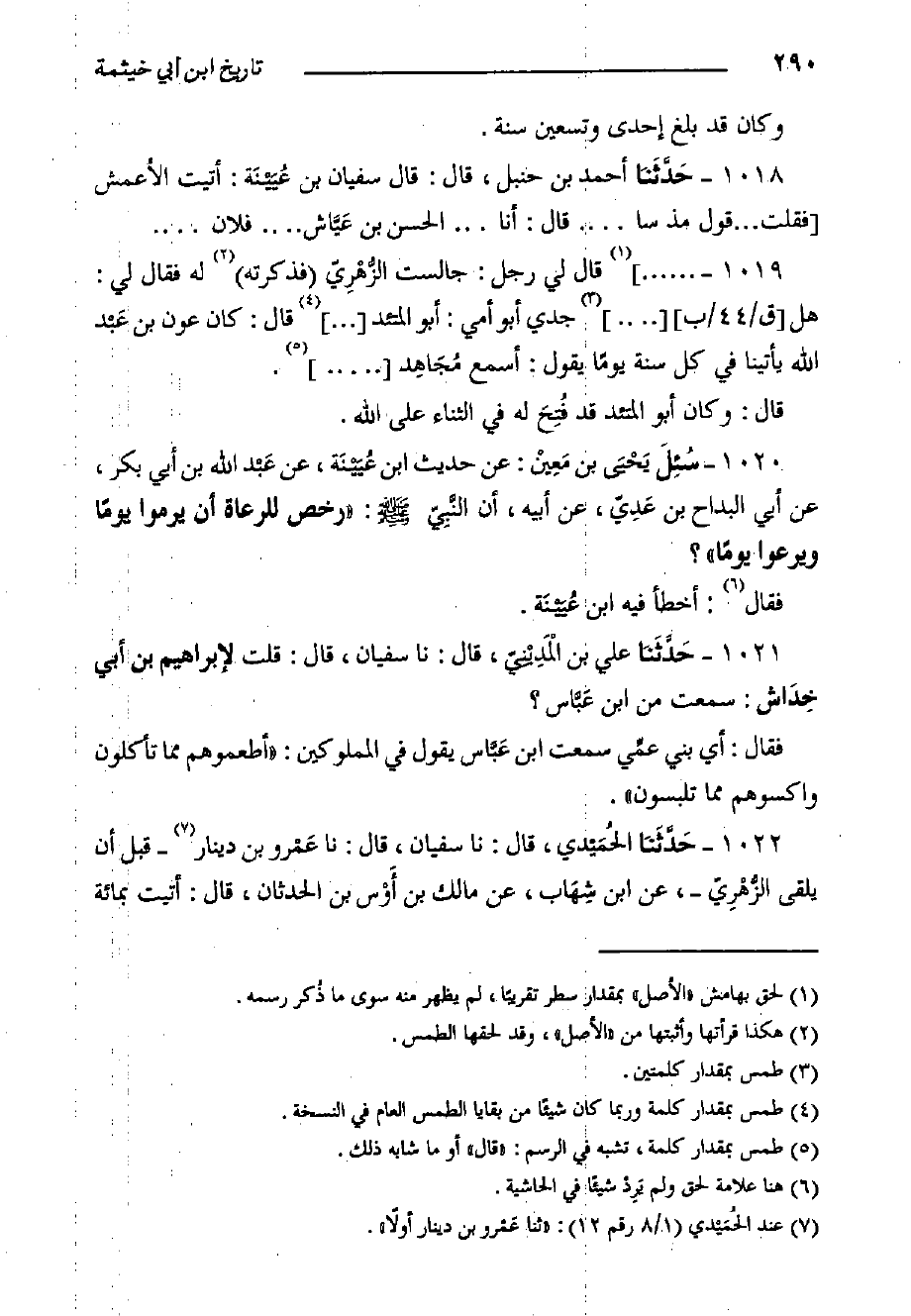 ١٠١٨- حَدَّثَنا أَحْمَدُ بْنُ حنبل, قَالَ: قَالَ سفيان بْن عُيَيْنَة: أتيت الأعمش فقلت...قول مذ سا ... قال: أخبرنا ... الحسن بْن عَيَّاش ... فلان ...