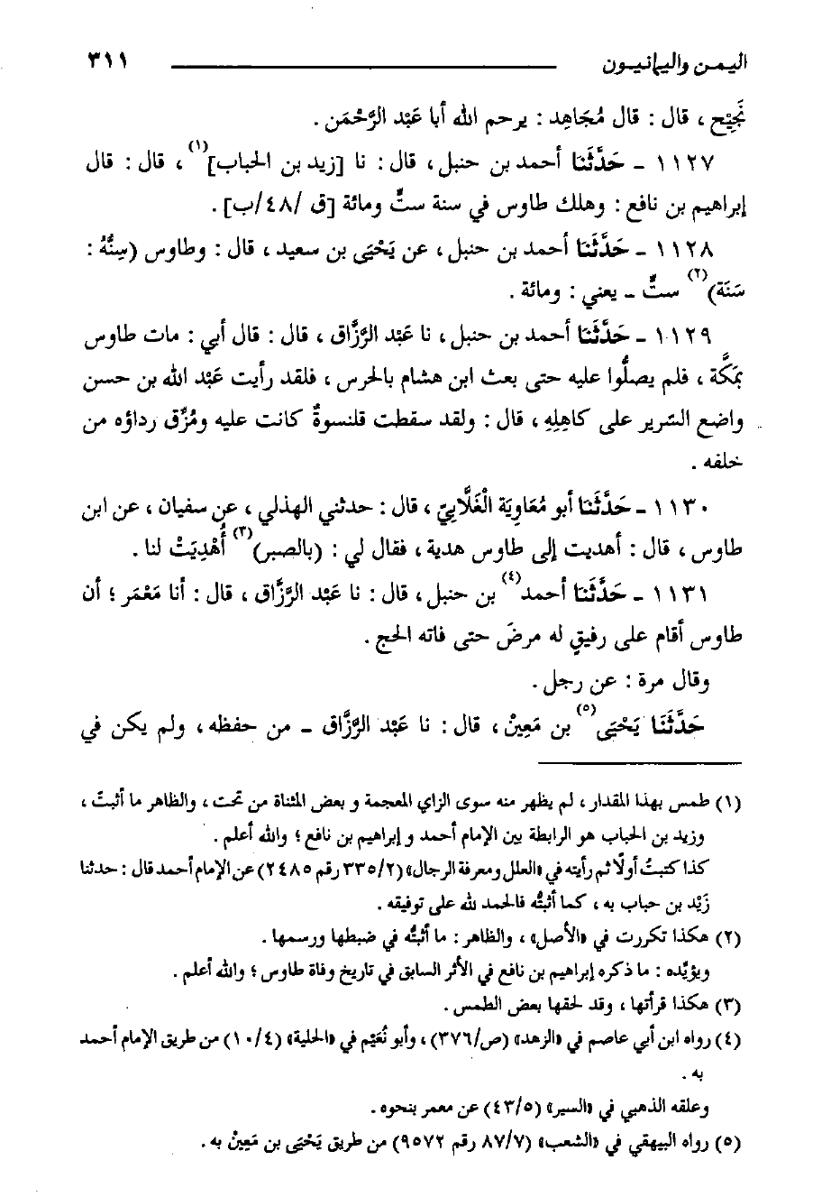 ١١٢٨- حَدَّثَنا أَحْمَد بْن حنبل، عَنْ يَحْيَى بْن سَعِيدٍ، قَالَ: وطاوس سِنُّهُ: سَنَة ستٍّ - يعني: ومئة.
