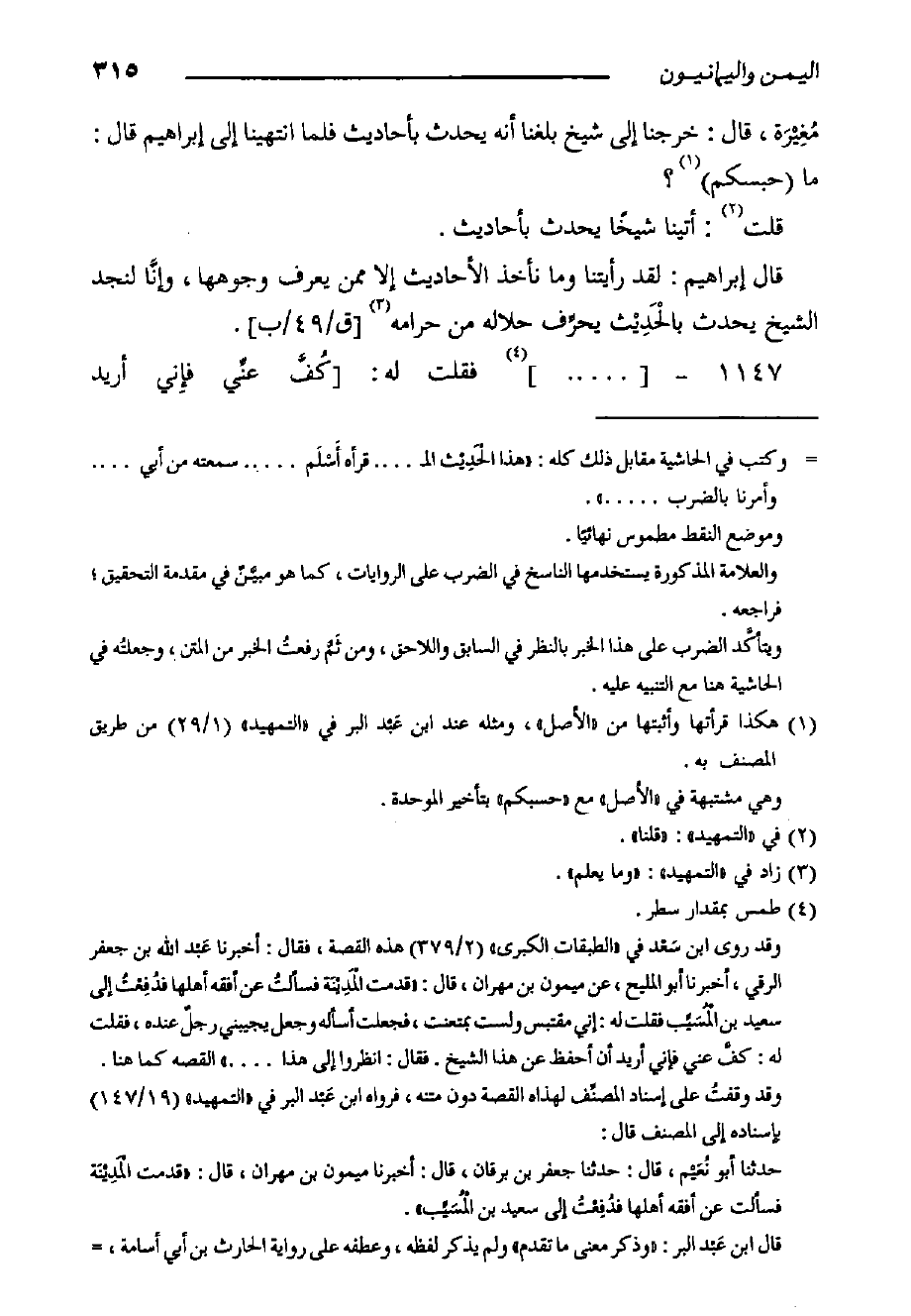 قَالَ إِبْرَاهِيم: لقد رأيتنا وما نأخذ الأحاديث إِلا ممن يعرف وجوهها، وإنَّا لنجد الشيخ يحدث بالْحَدِيْث يحرِّف حلاله من حرامه [ق/٤٩/ب] .