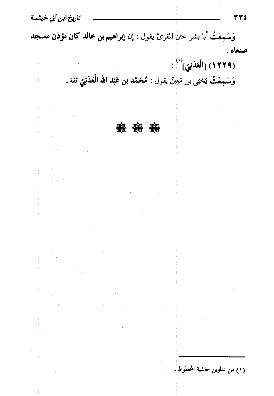 كتاب التاريخ الكبير لابن أبي خيثمة - السفر الثالث - ط الفاروق (اسم الجزء: 1)